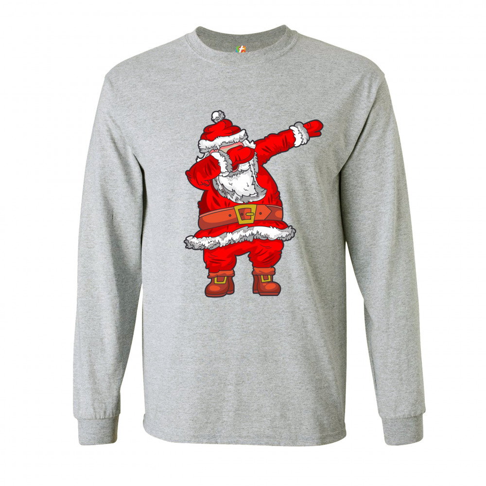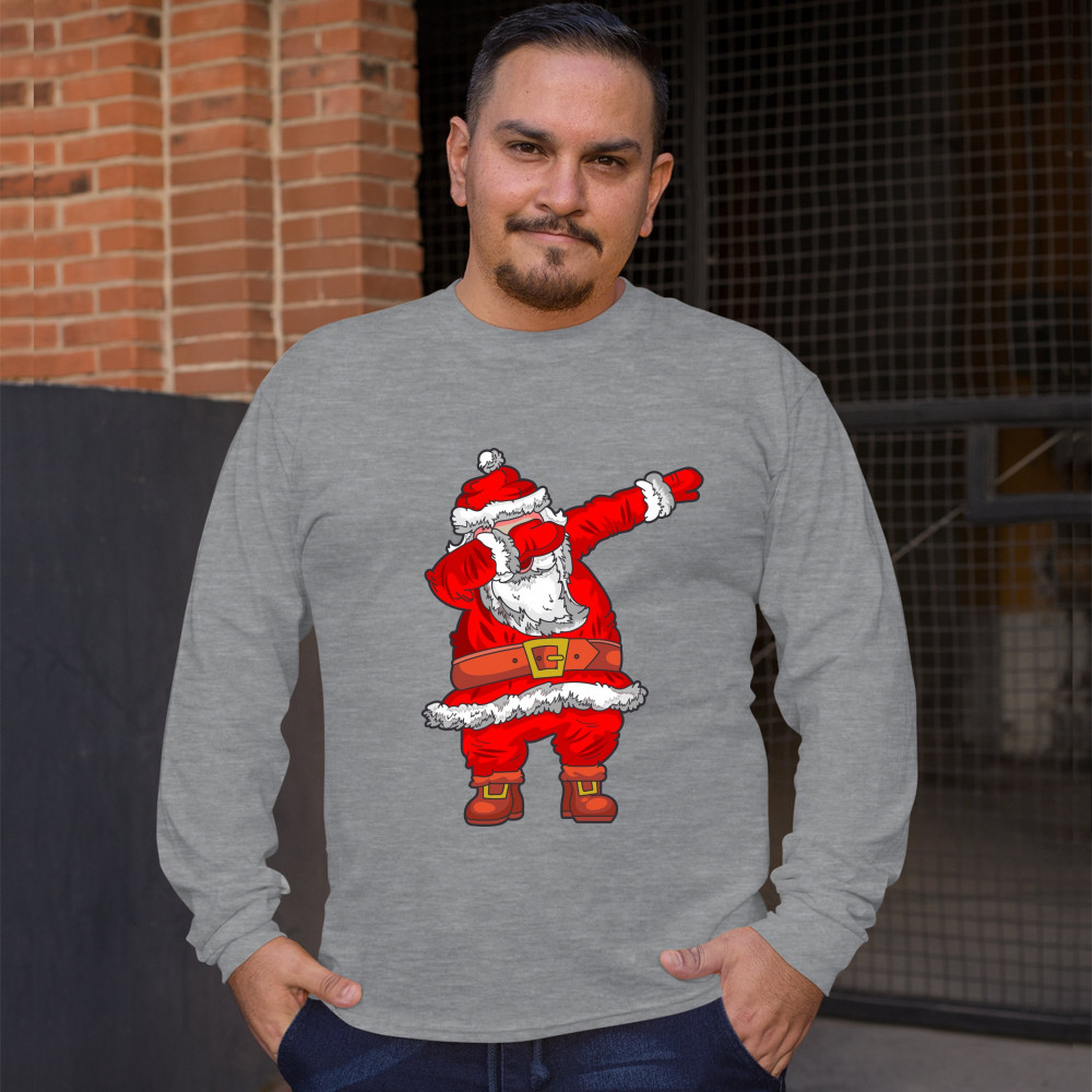 DABBING SANTA CLAUS long sleeve t-shirt merry christmas funny dab dance x-mas gray
