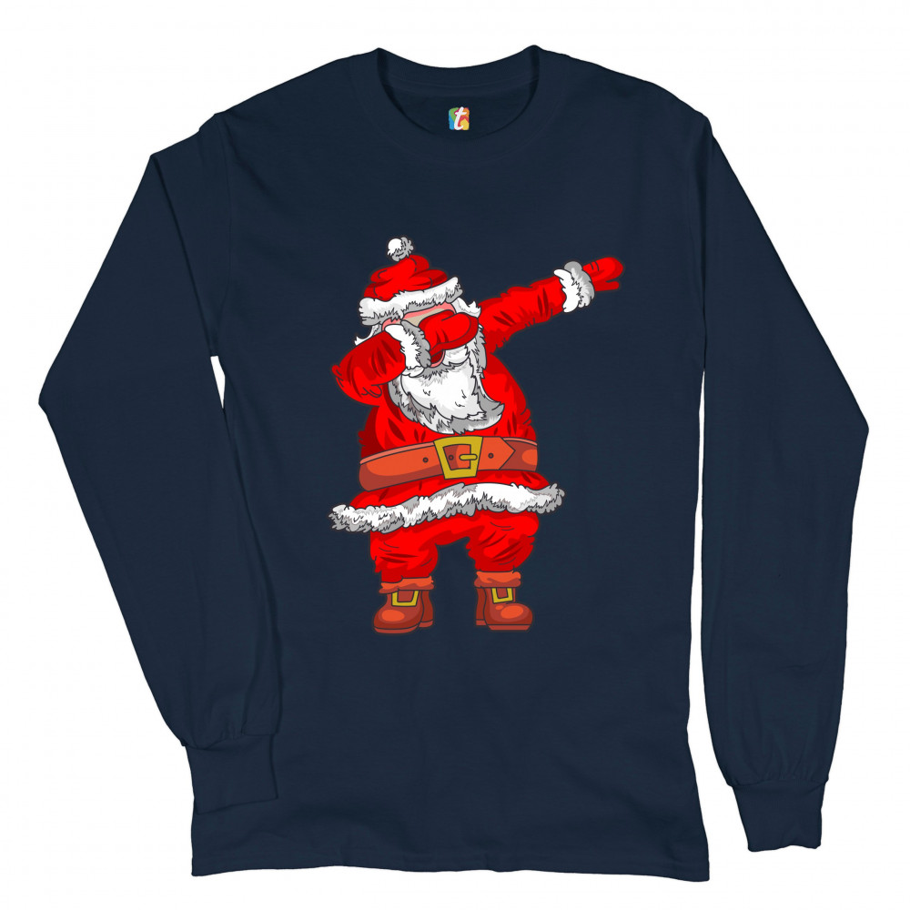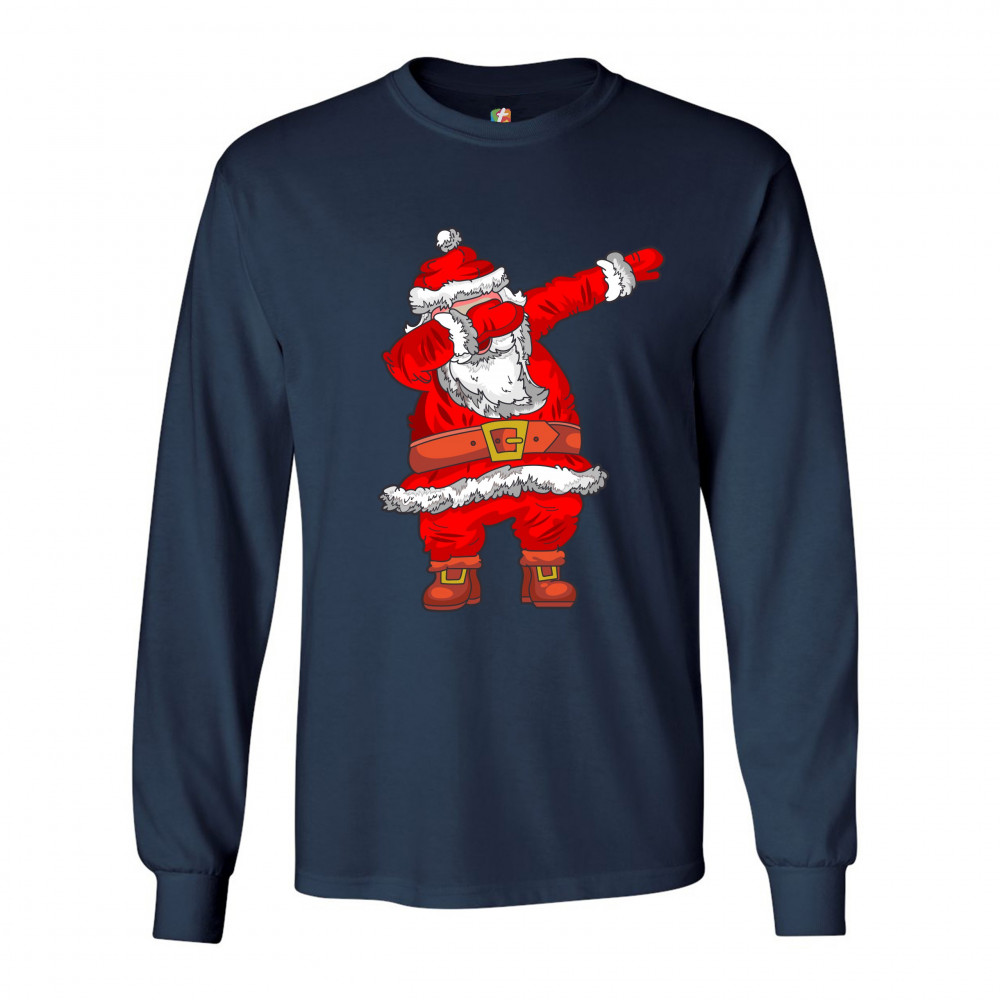 DABBING SANTA CLAUS long sleeve t-shirt merry christmas funny dab dance x-mas navy blue