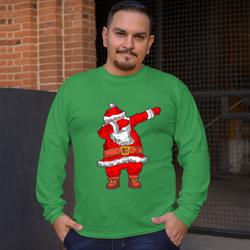 DABBING SANTA CLAUS long sleeve t-shirt merry christmas funny dab dance x-mas green