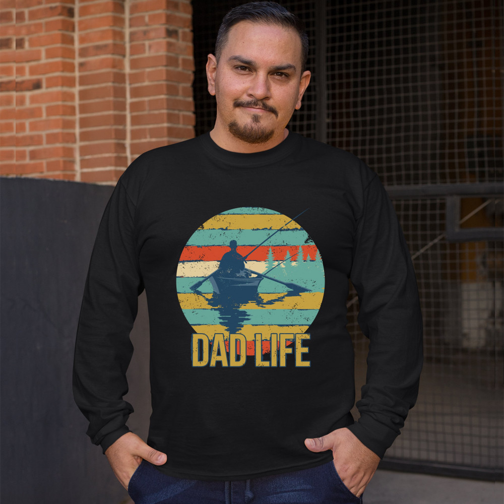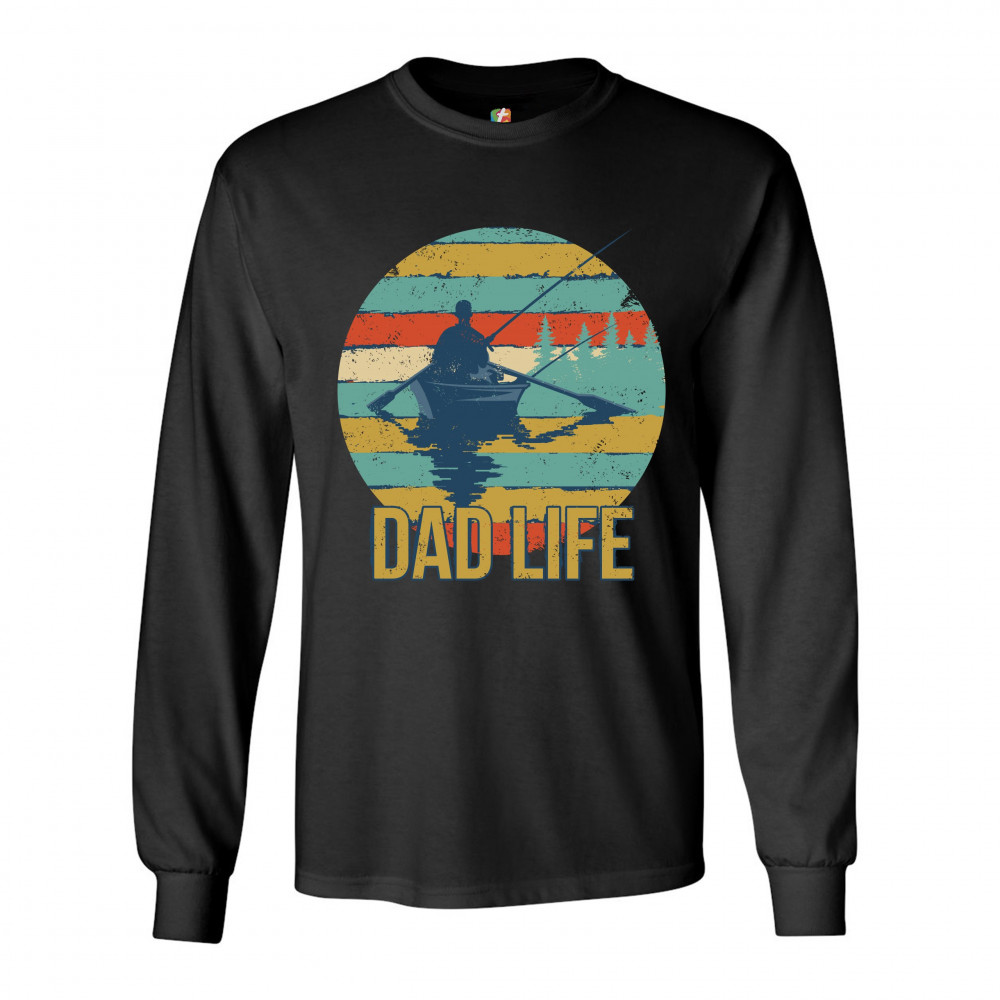 DAD LIFE long sleeve t-shirt fatherhood outdoorsman fishing father's day black