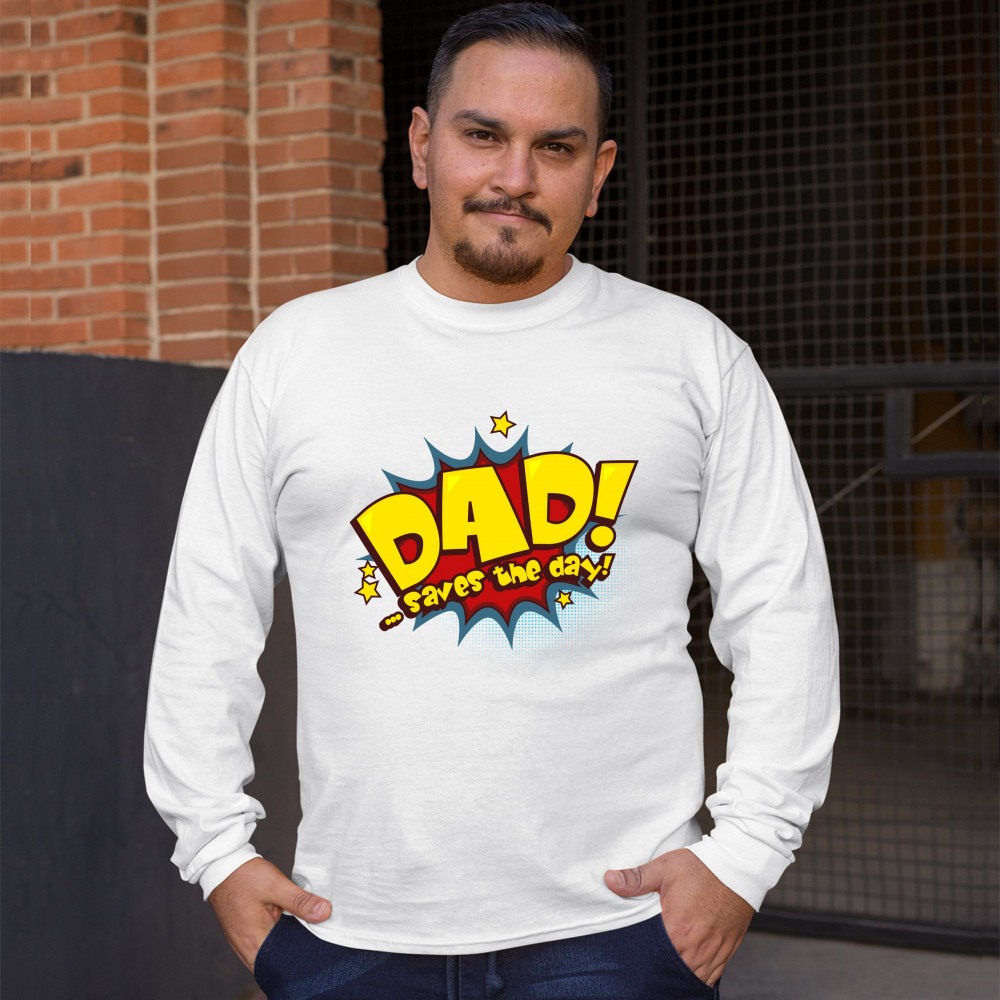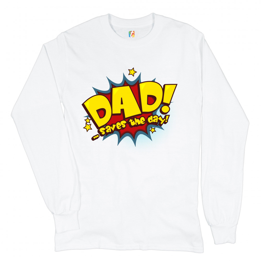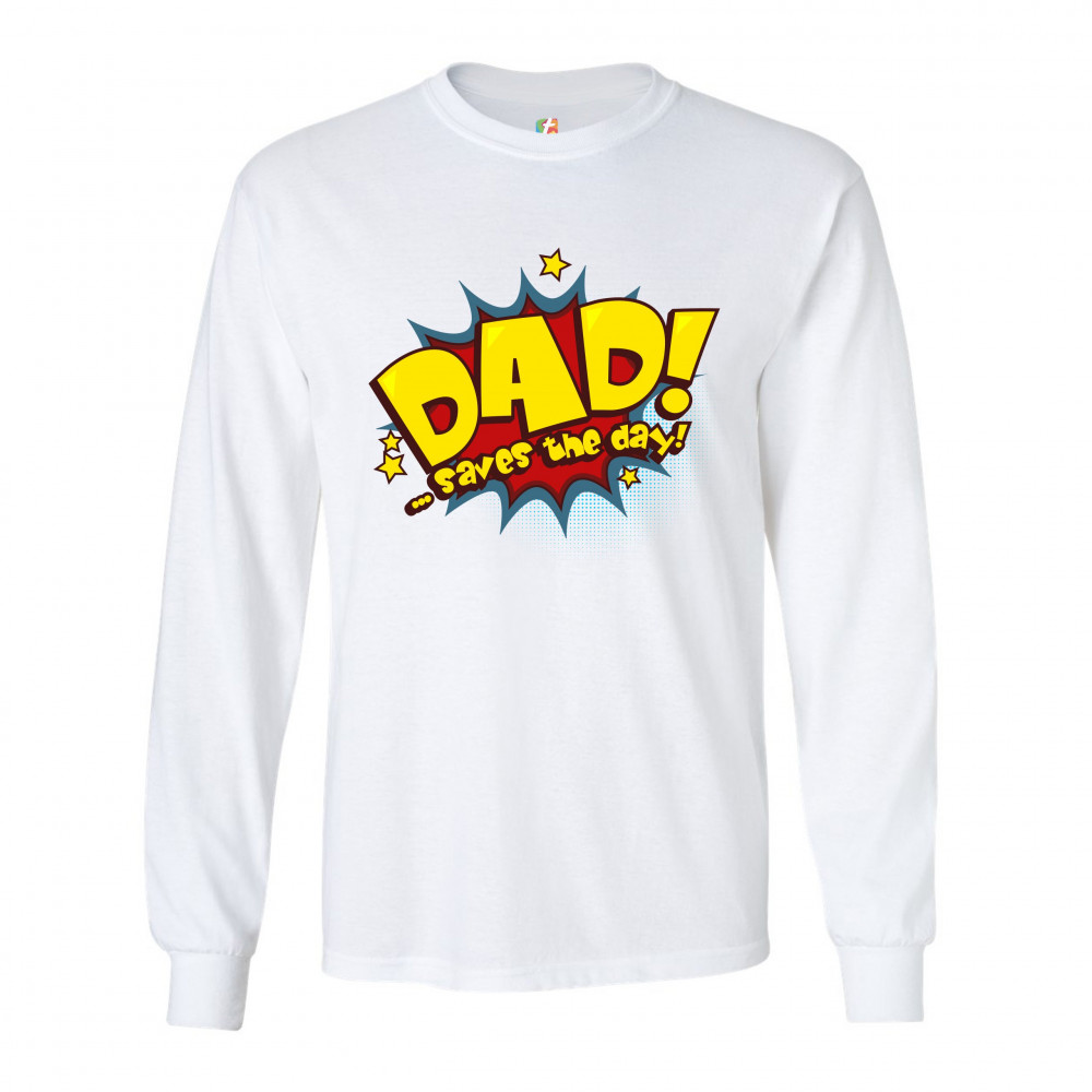 DAD SAVES THE DAY! long sleeve t-shirt father's day world's greatest dad white
