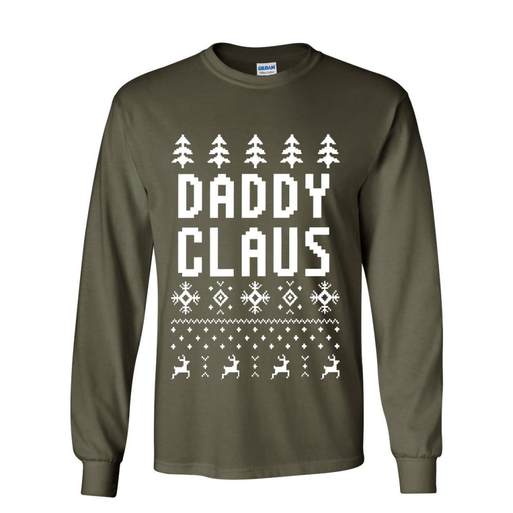 DADDY CLAUS FUNNY SANTA long sleeve t-shirt christmas xmas ugly sweatshirt tee military green