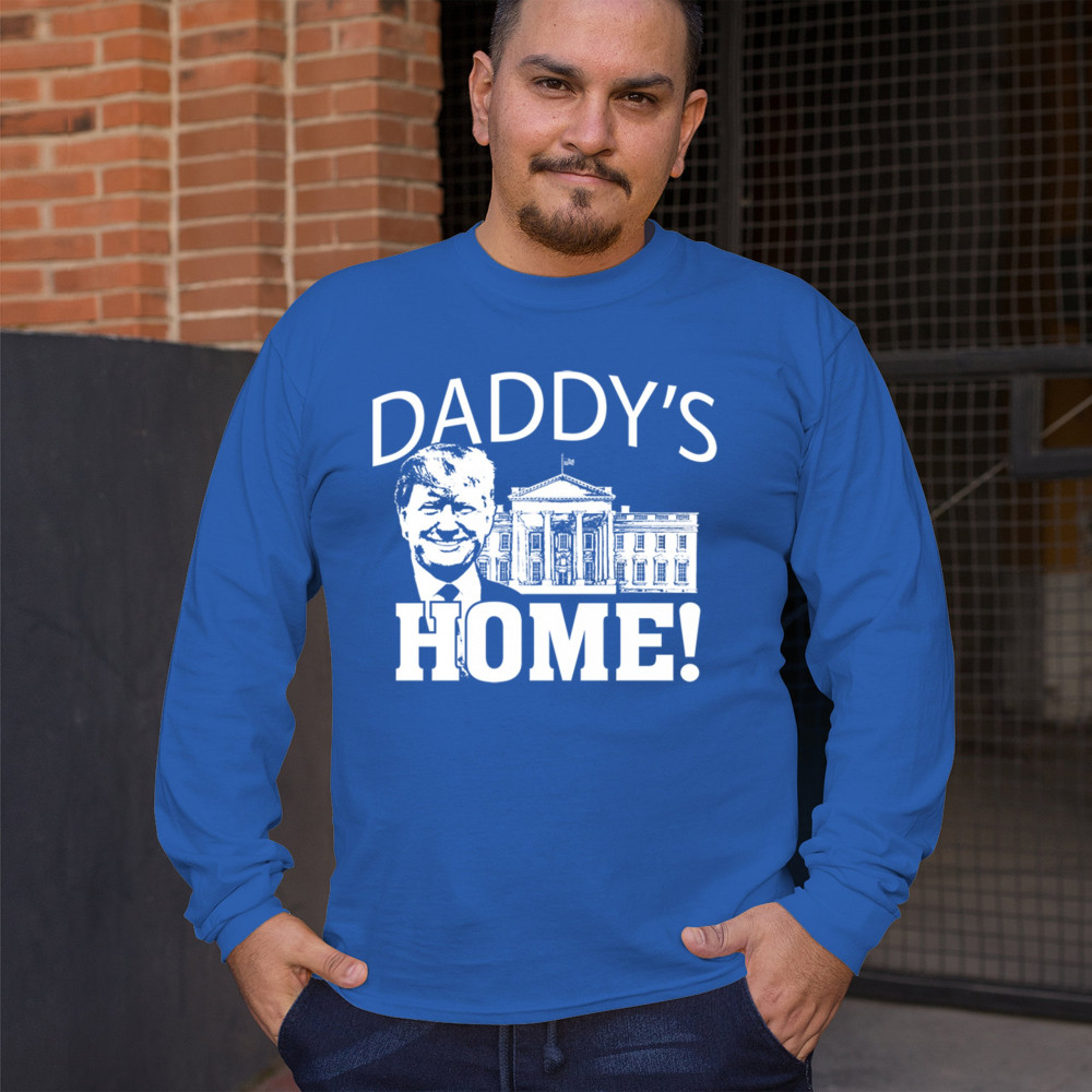 Celebrate Trump’s return with the "Daddy's Home" design! Perfect for conservatives and supporters of America First values and Republican victory.