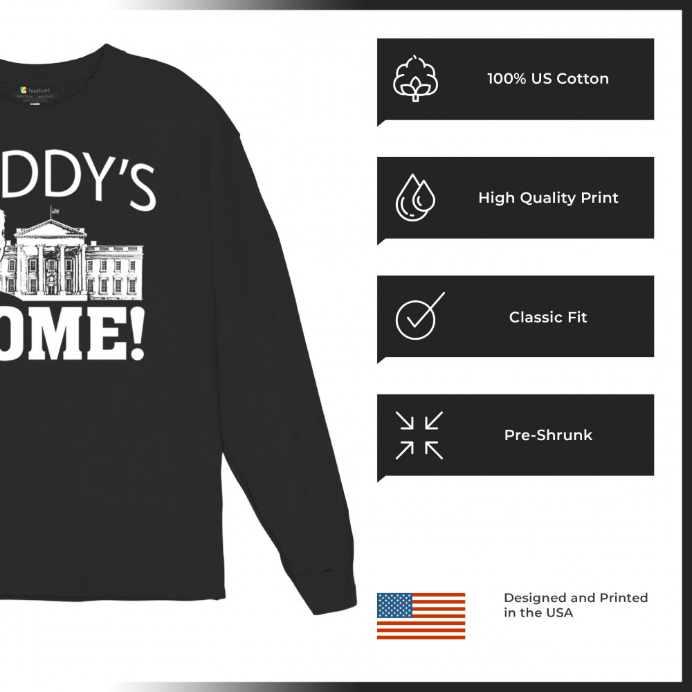 Celebrate Trump’s return with the "Daddy's Home" design! Perfect for conservatives and supporters of America First values and Republican victory.
