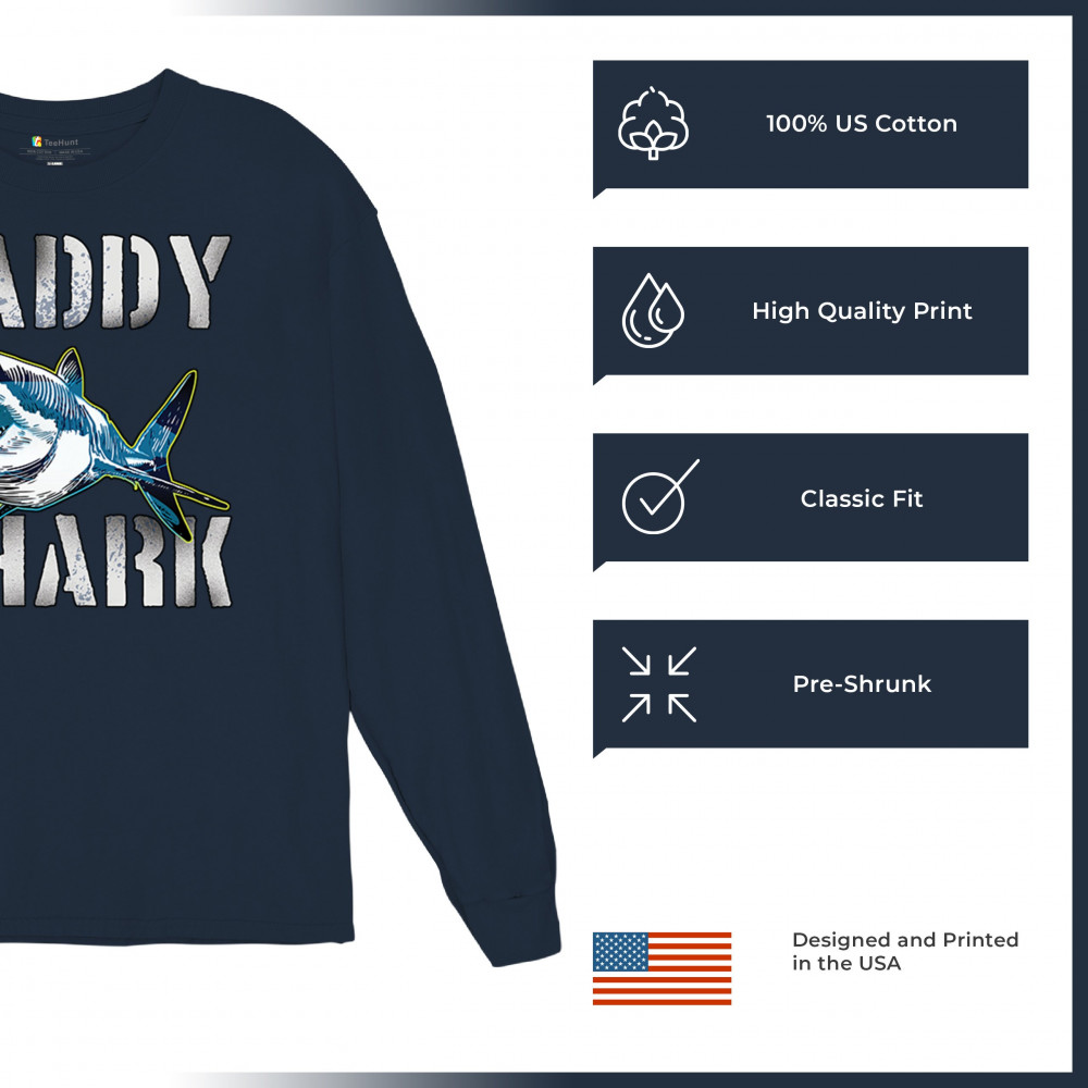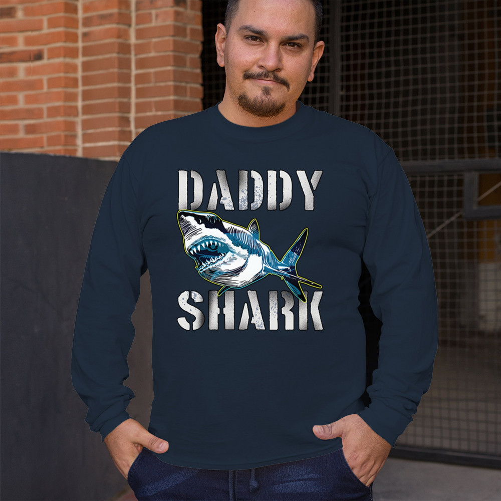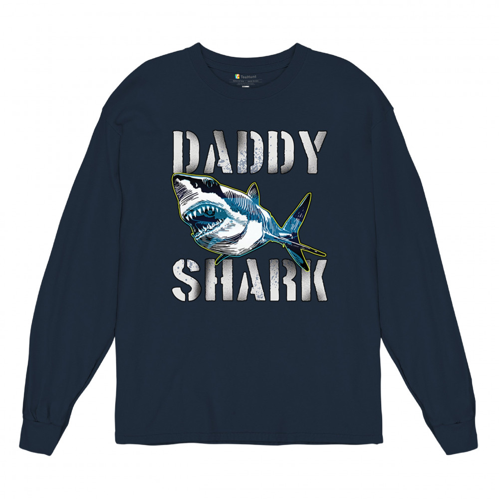 DADDY SHARK FUNNY FATHER'S DAY long sleeve t-shirt funny dad joke grandpa papa navy blue