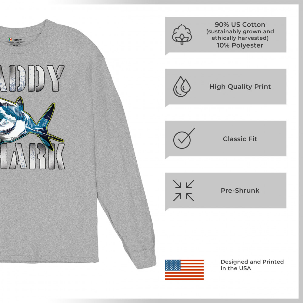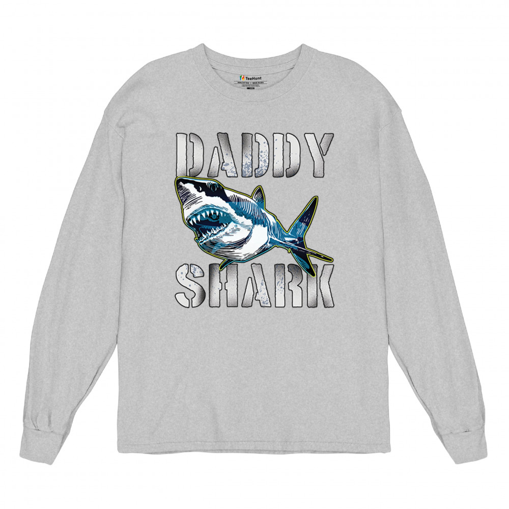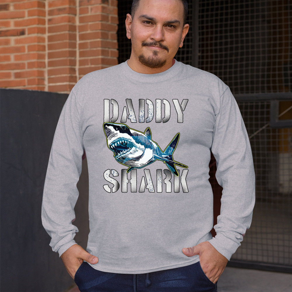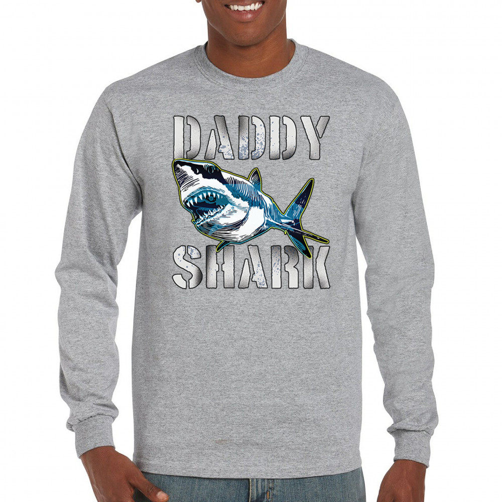 DADDY SHARK FUNNY FATHER'S DAY long sleeve t-shirt funny dad joke grandpa papa gray