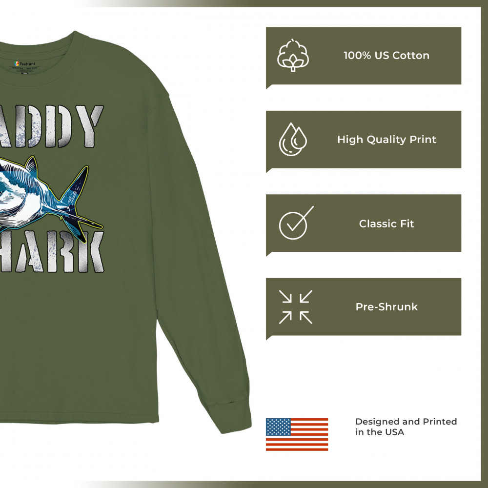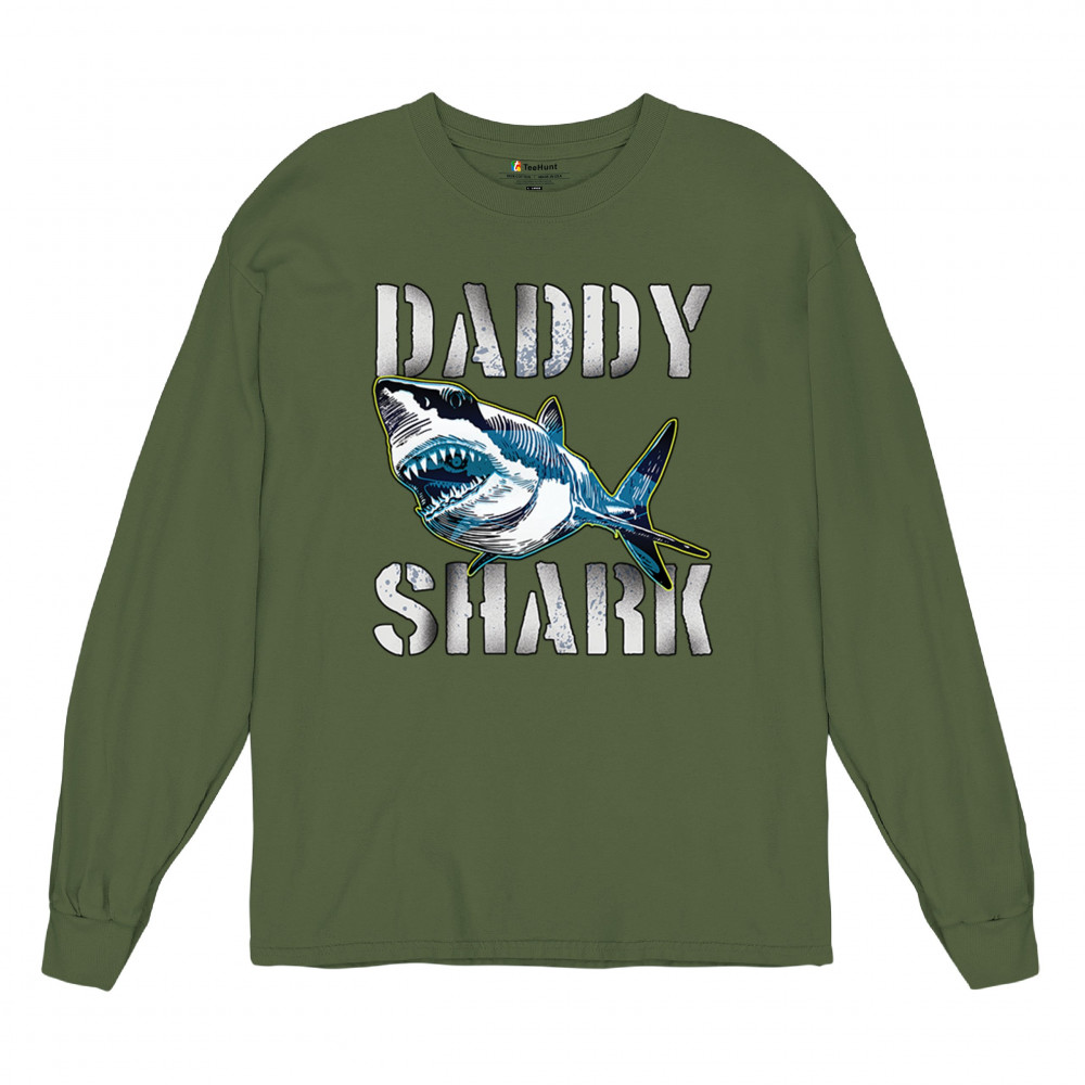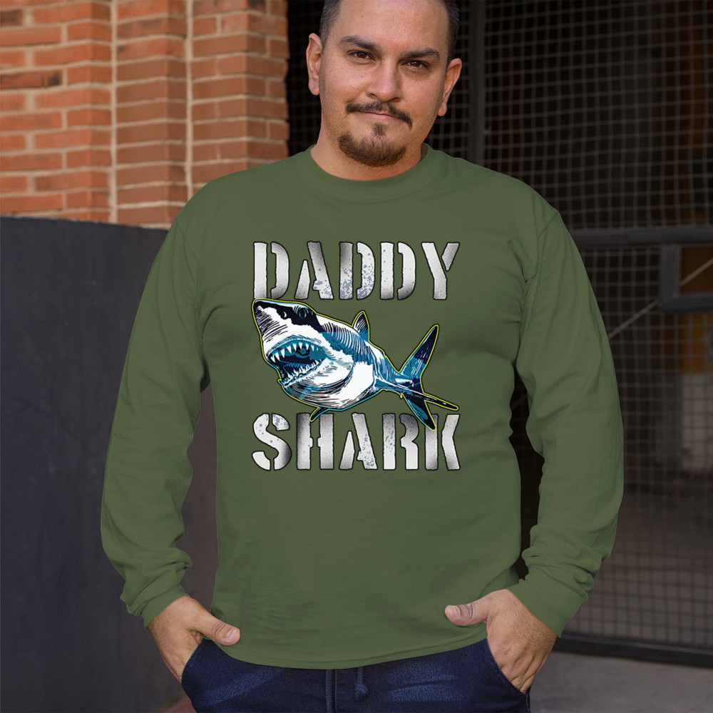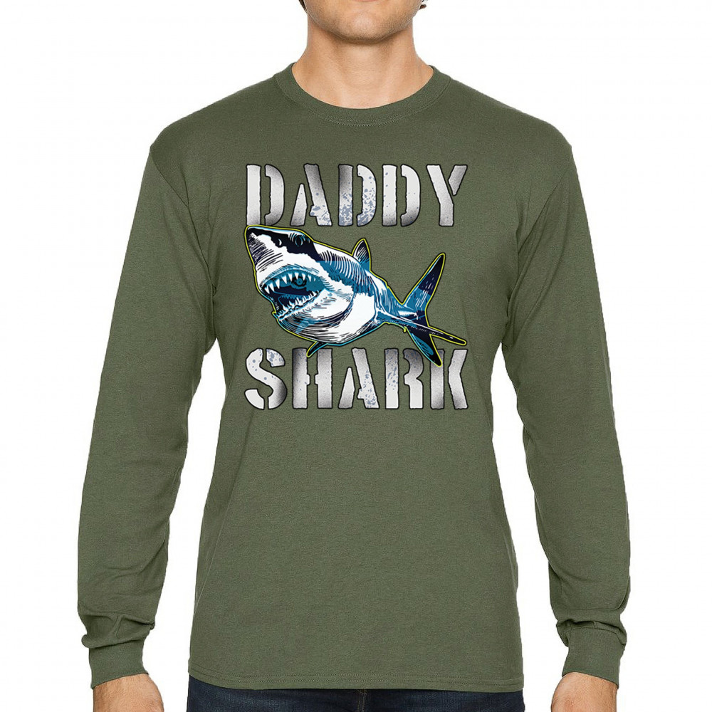 DADDY SHARK FUNNY FATHER'S DAY long sleeve t-shirt funny dad joke grandpa papa military green