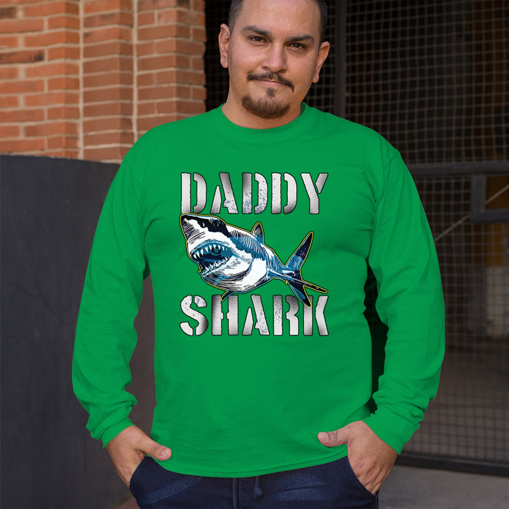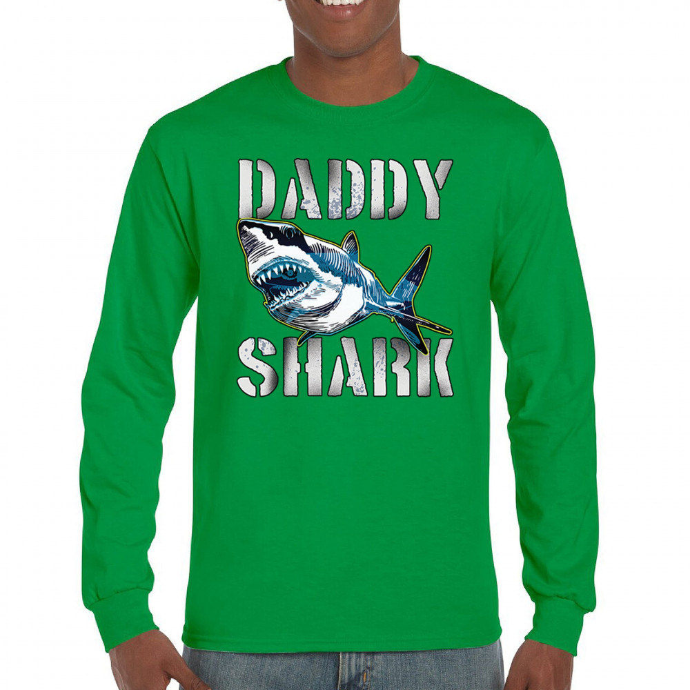 DADDY SHARK FUNNY FATHER'S DAY long sleeve t-shirt funny dad joke grandpa papa green