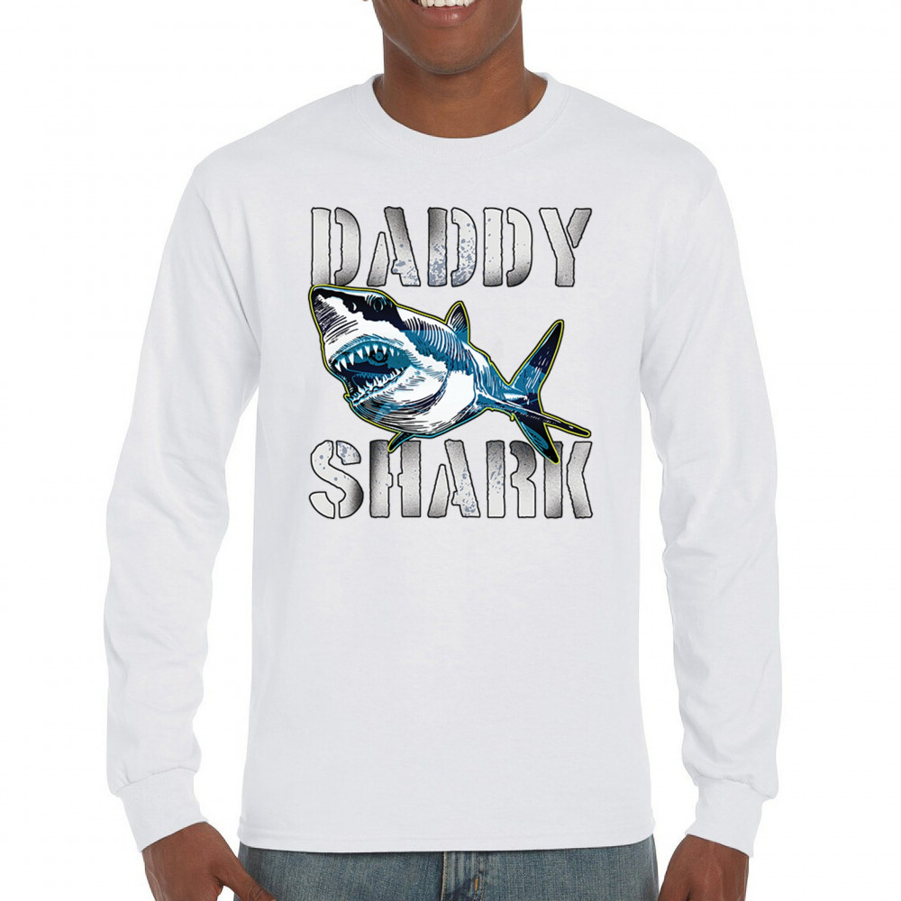 DADDY SHARK FUNNY FATHER'S DAY long sleeve t-shirt funny dad joke grandpa papa white