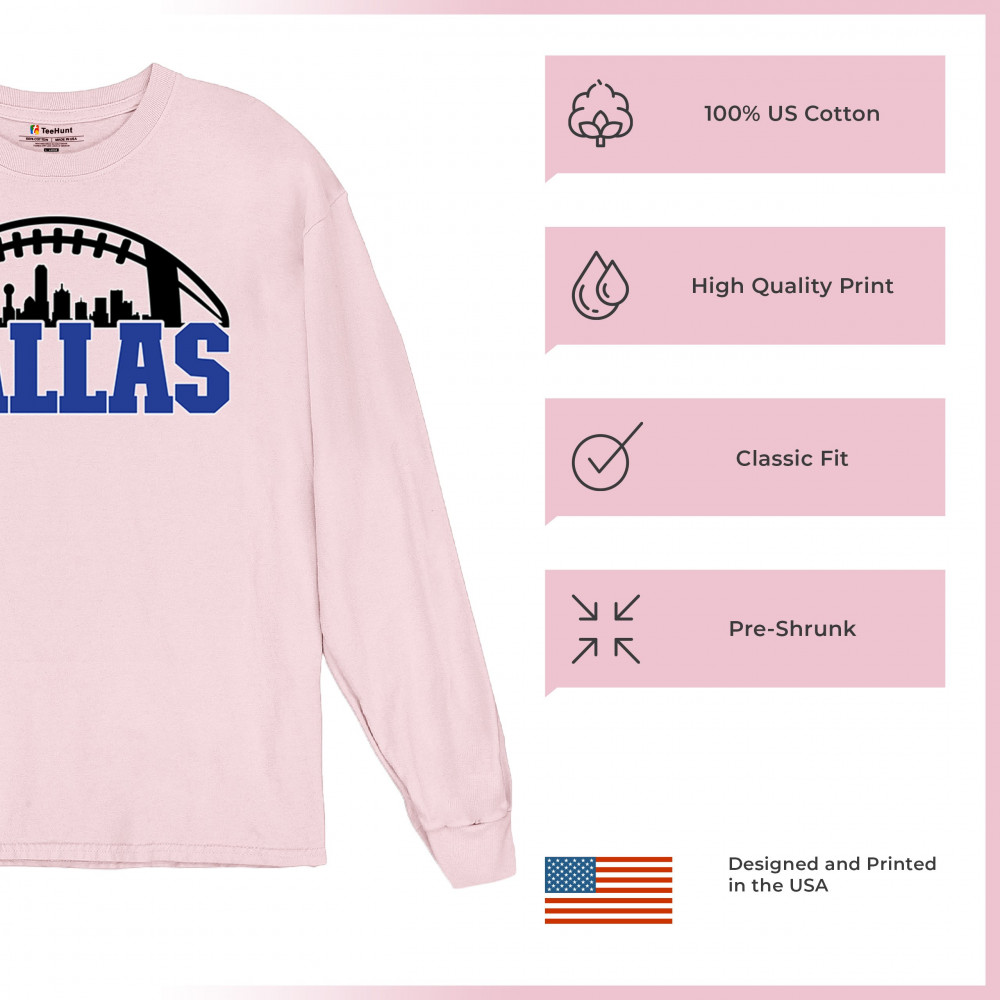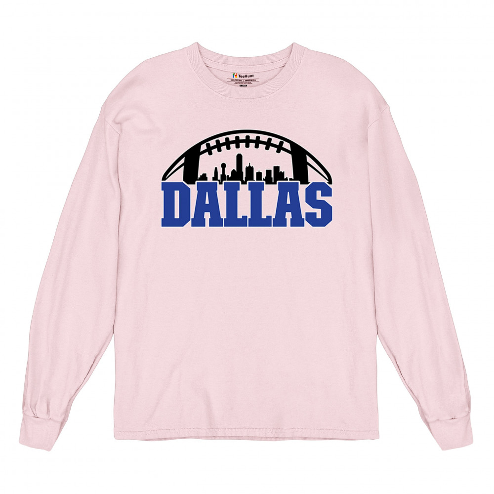 Show off your Dallas pride with a bold football-themed design featuring the city's skyline. Perfect for game days, tailgates, and passionate fans.