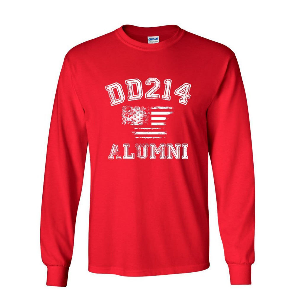 DD214 ALUMNI distressed american flag long sleeve t-shirt military veteran tee red