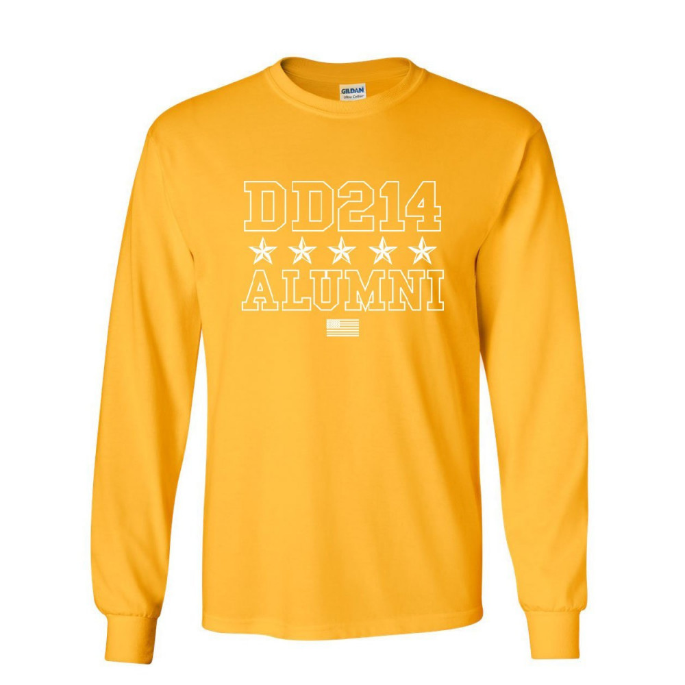 DD214 ALUMNI MILITARY dd214 alumni long sleeve t-shirt patriotic military soldier veteran us flag tee yellow