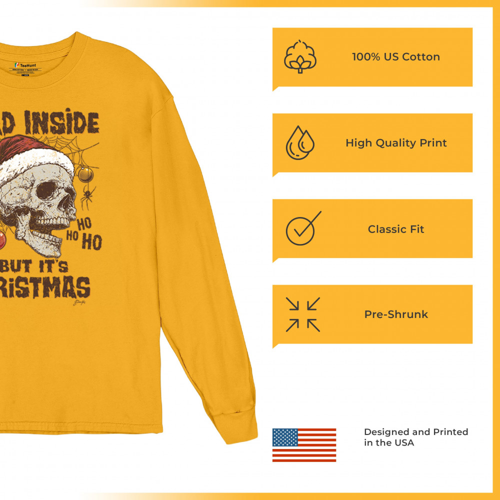This darkly funny Christmas skull design blends holiday ornaments, grunge textures, and sarcastic energy for an alternative seasonal vibe. Ideal for fans of gothic humor, edgy winter outfits, anti-cheer personality, holiday parties, offbeat Christmas art, moody aesthetics, and anyone who prefers a witty twist on classic festive themes.