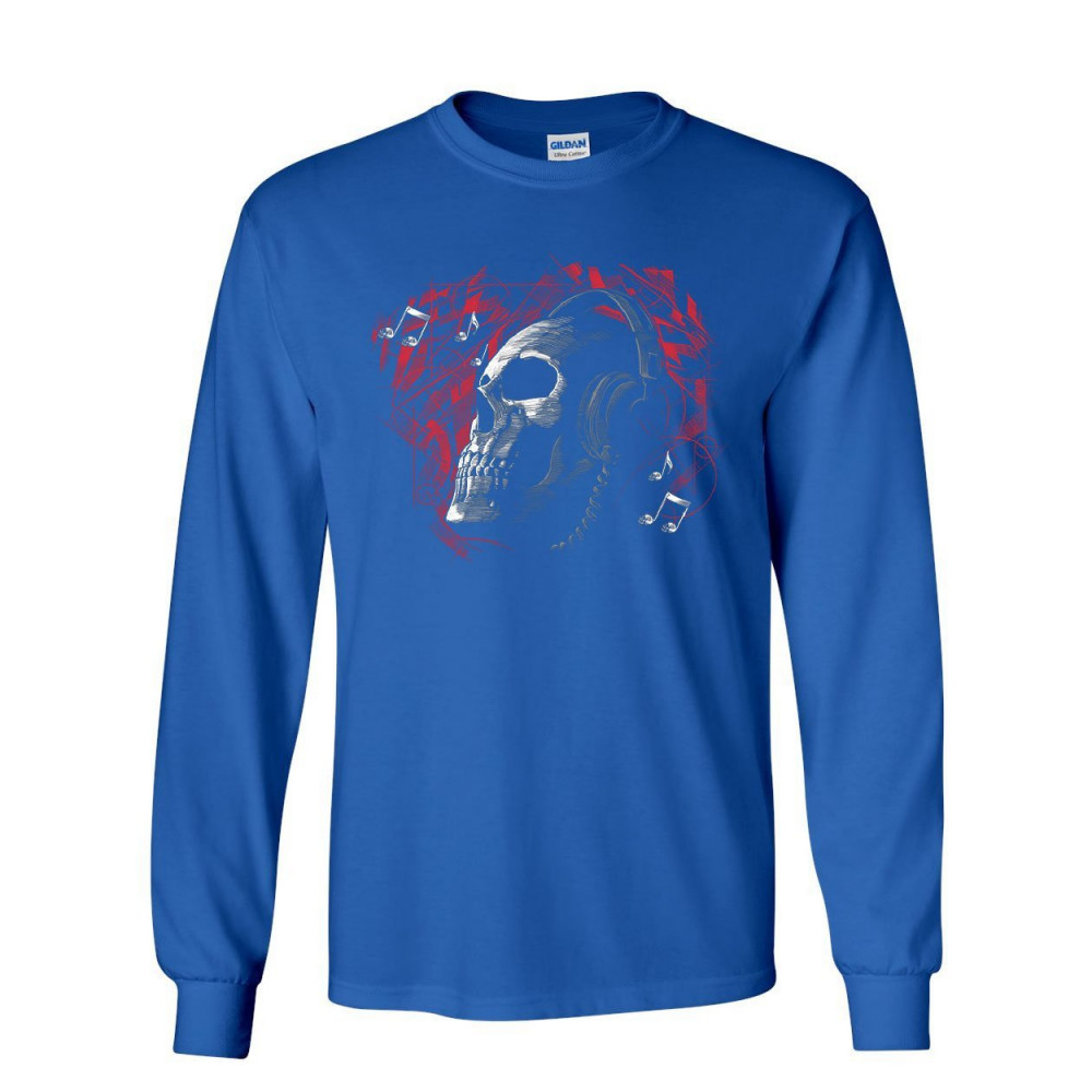 DEADPHONES long sleeve t-shirt music headphones skull face dead edm hip hop tee royal blue