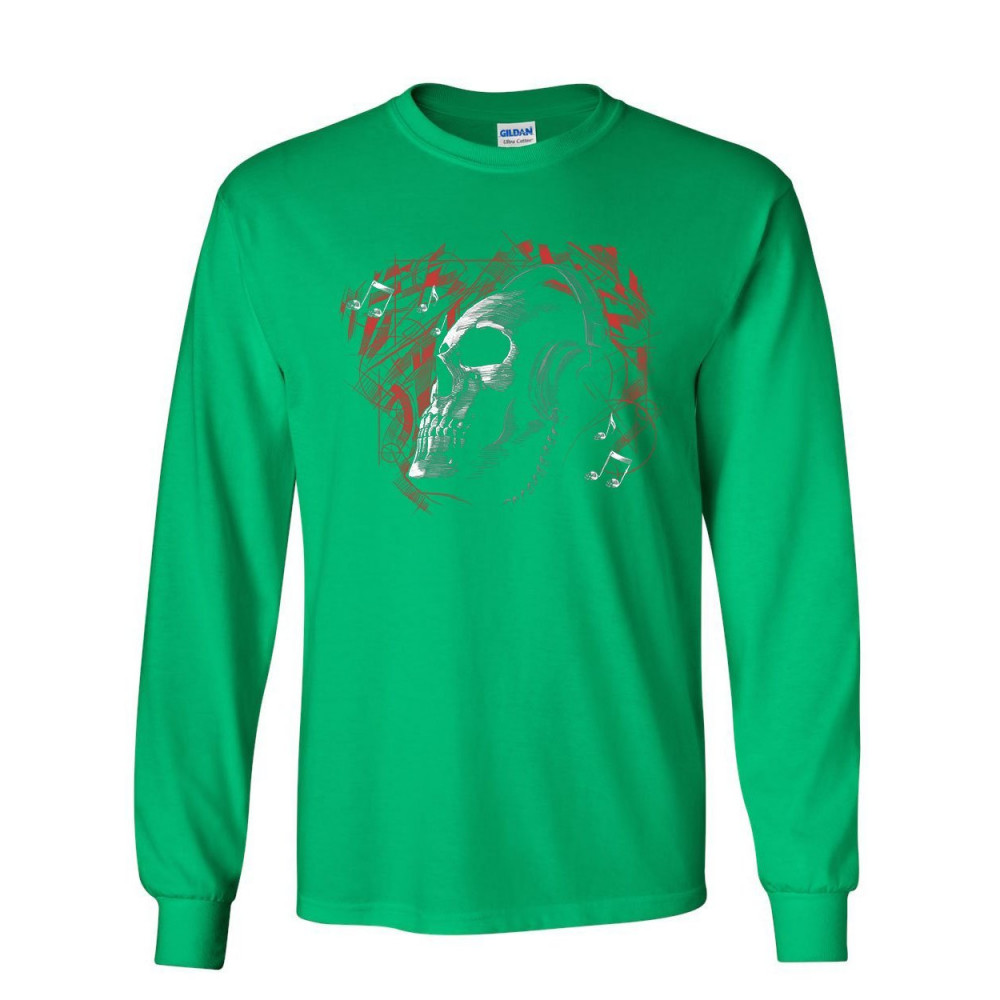 DEADPHONES long sleeve t-shirt music headphones skull face dead edm hip hop tee green