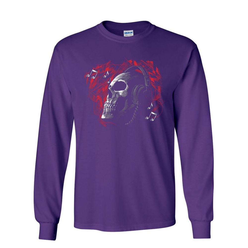 DEADPHONES long sleeve t-shirt music headphones skull face dead edm hip hop tee purple
