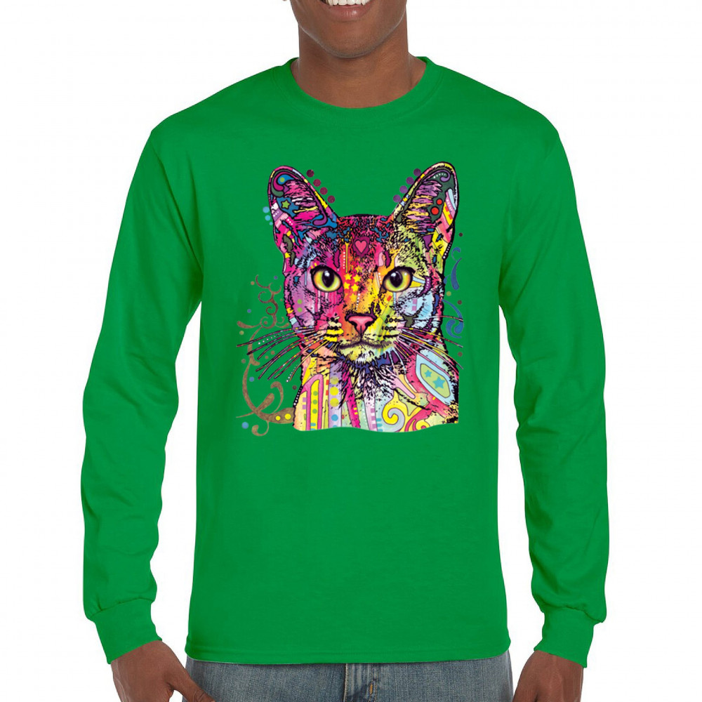 DEAN RUSSO ABYSSINIAN CAT long sleeve t-shirt colorful cute kitten pet green