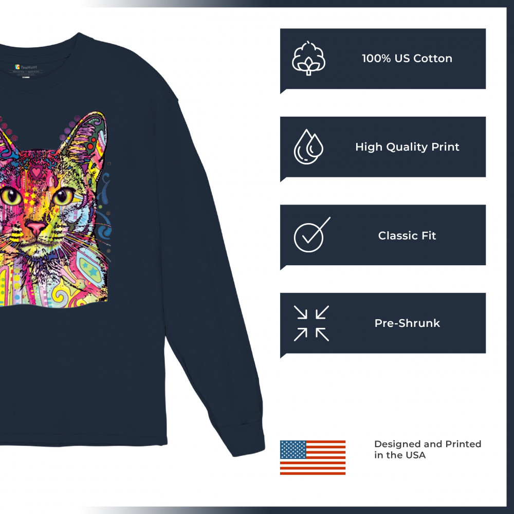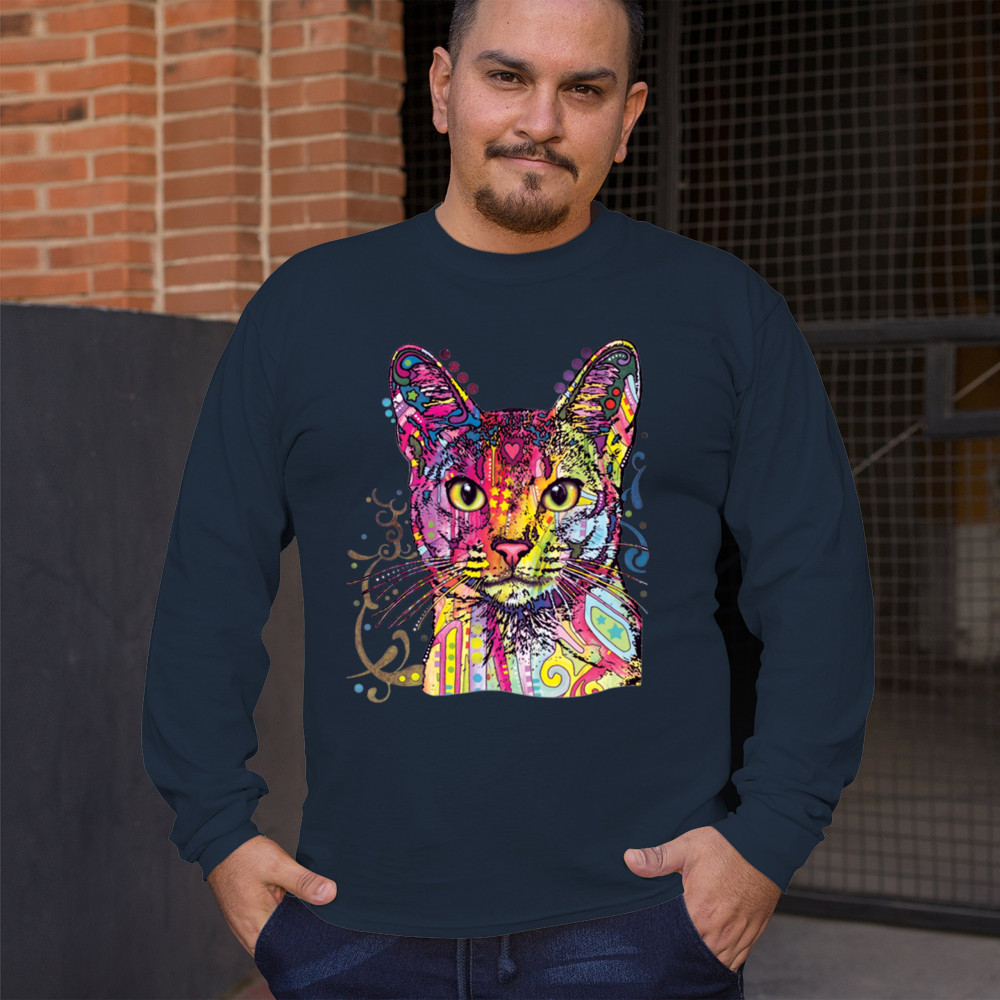 DEAN RUSSO ABYSSINIAN CAT long sleeve t-shirt colorful cute kitten pet navy blue