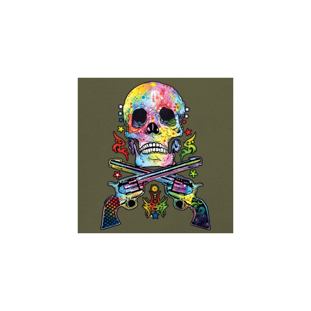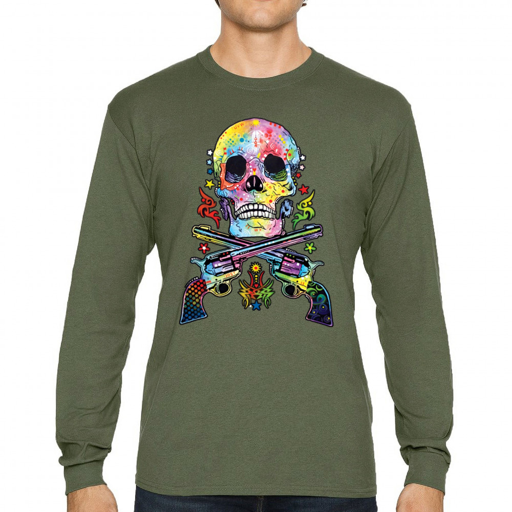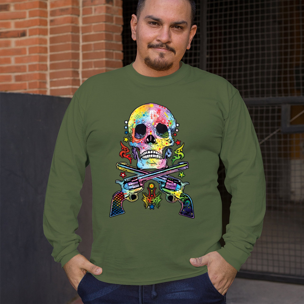 DEAN RUSSO ART SKULL AND GUNS long sleeve t-shirt colorful 2nd amendment military green