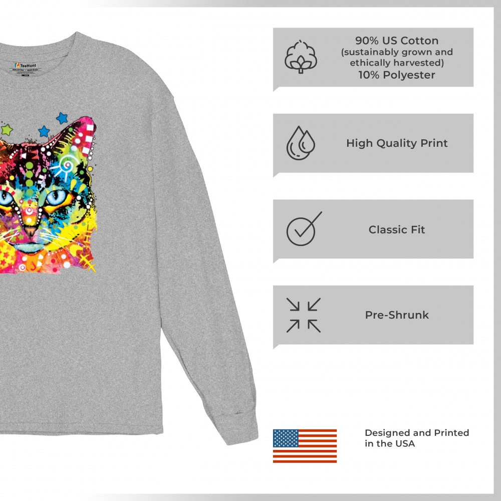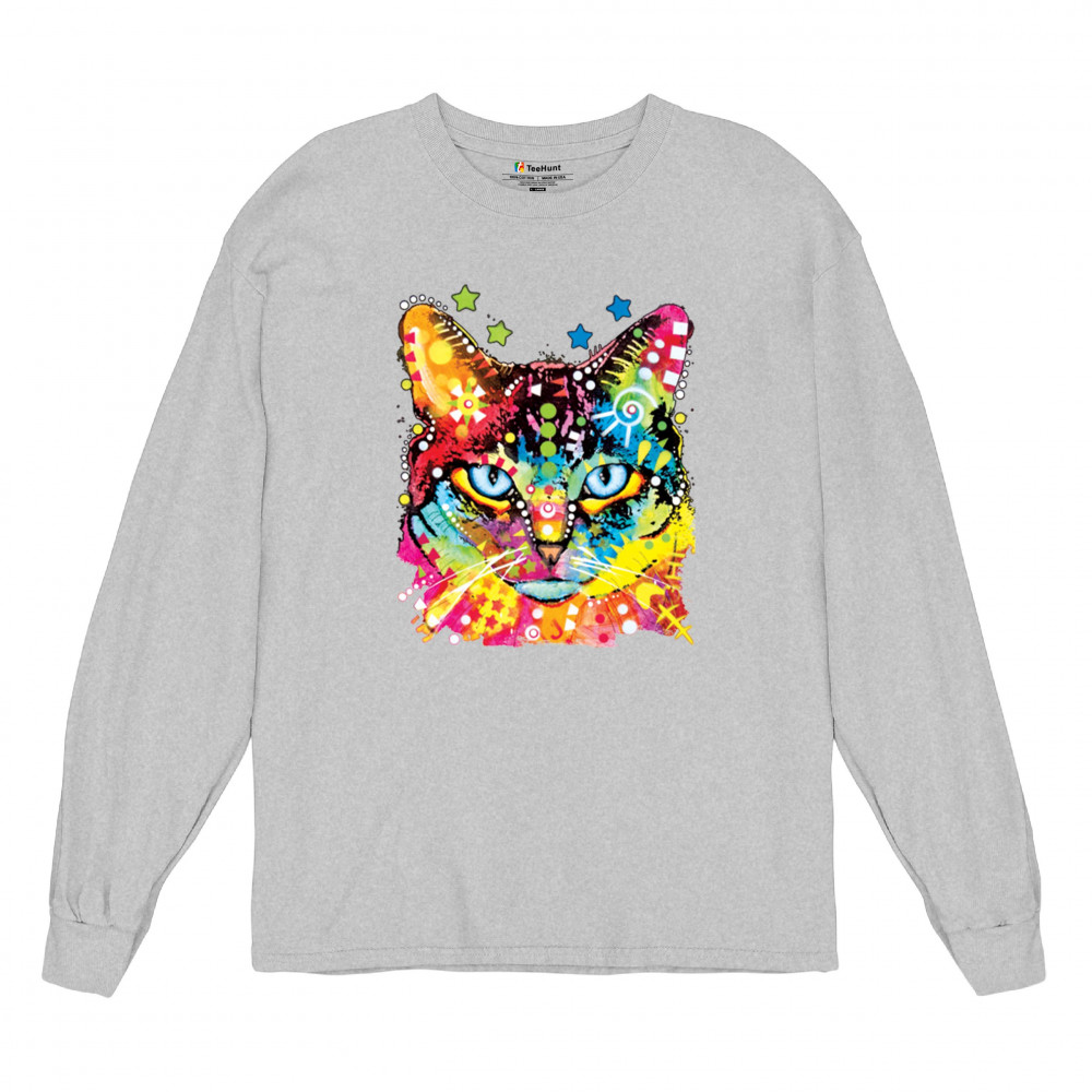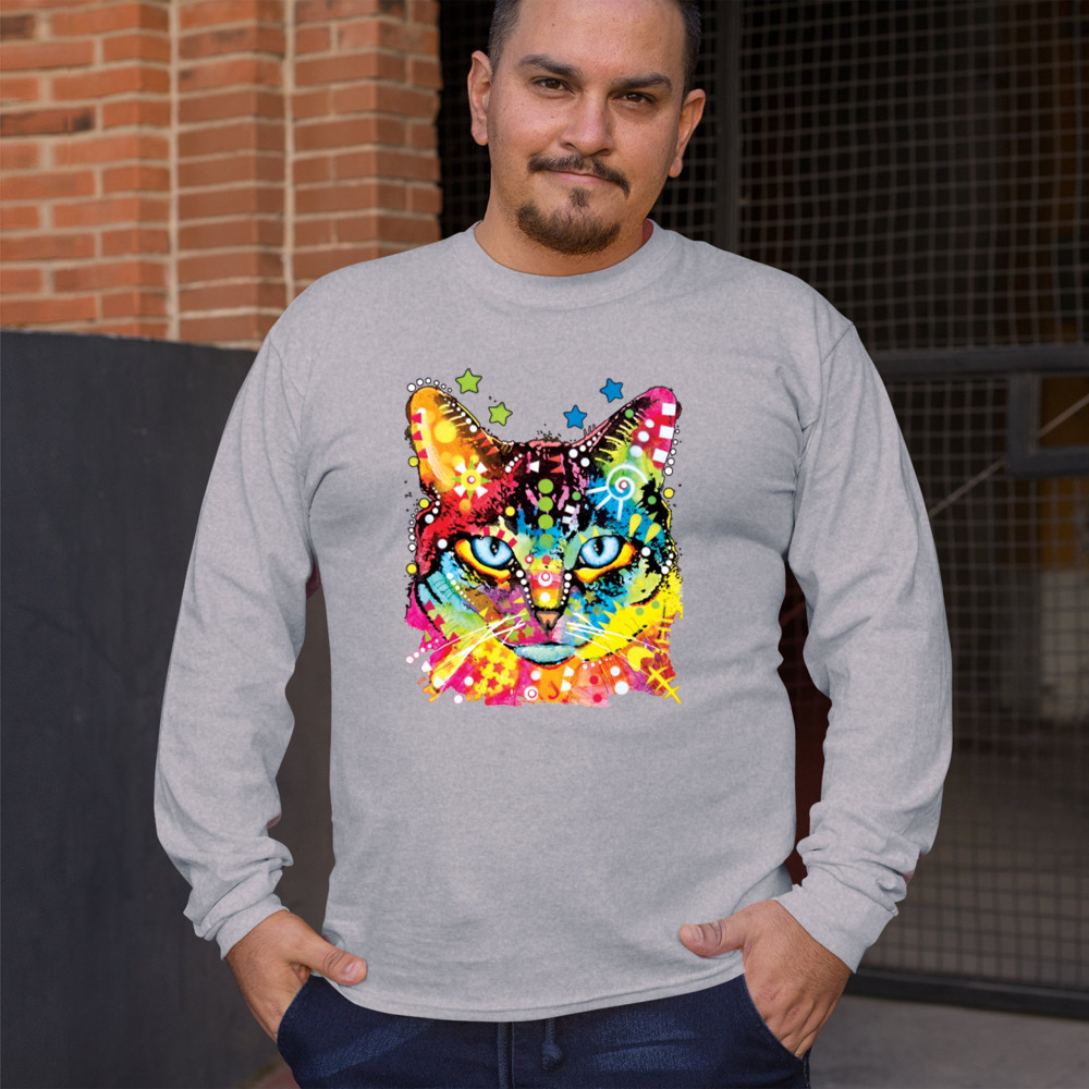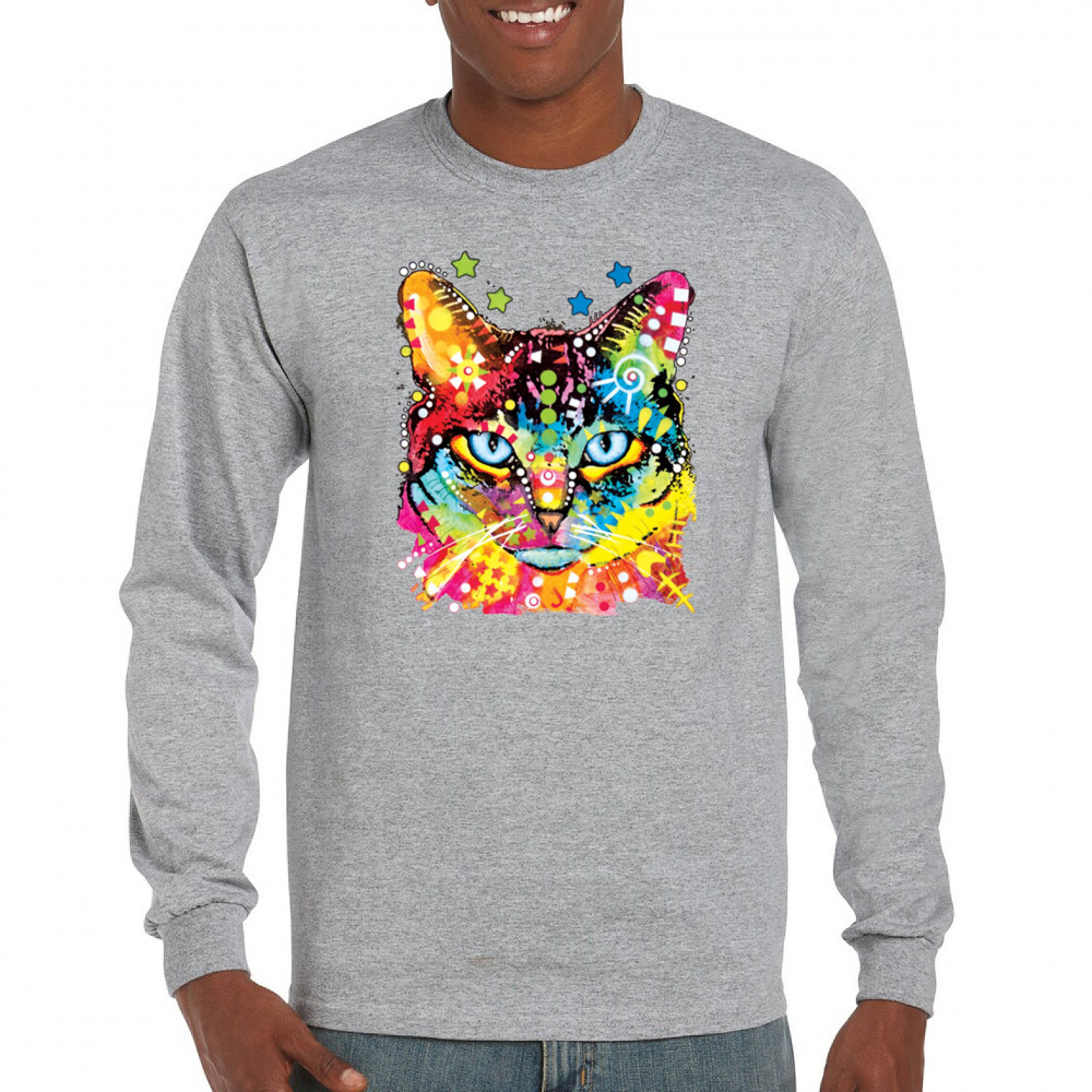 DEAN RUSSO BLUE EYES CAT long sleeve t-shirt colorful cute kitten pet gray