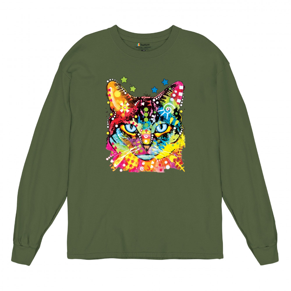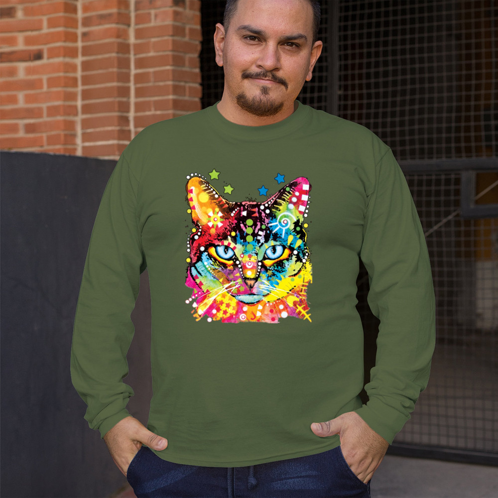 DEAN RUSSO BLUE EYES CAT long sleeve t-shirt colorful cute kitten pet military green
