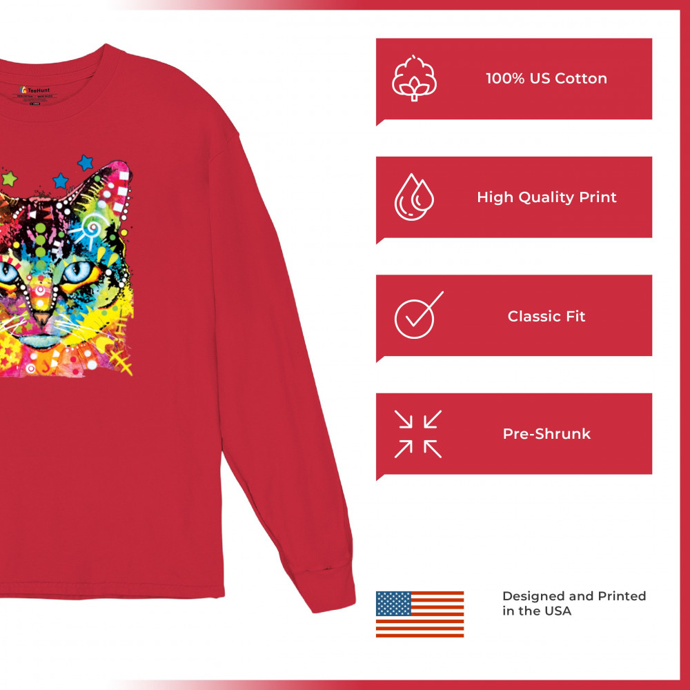 DEAN RUSSO BLUE EYES CAT long sleeve t-shirt colorful cute kitten pet red
