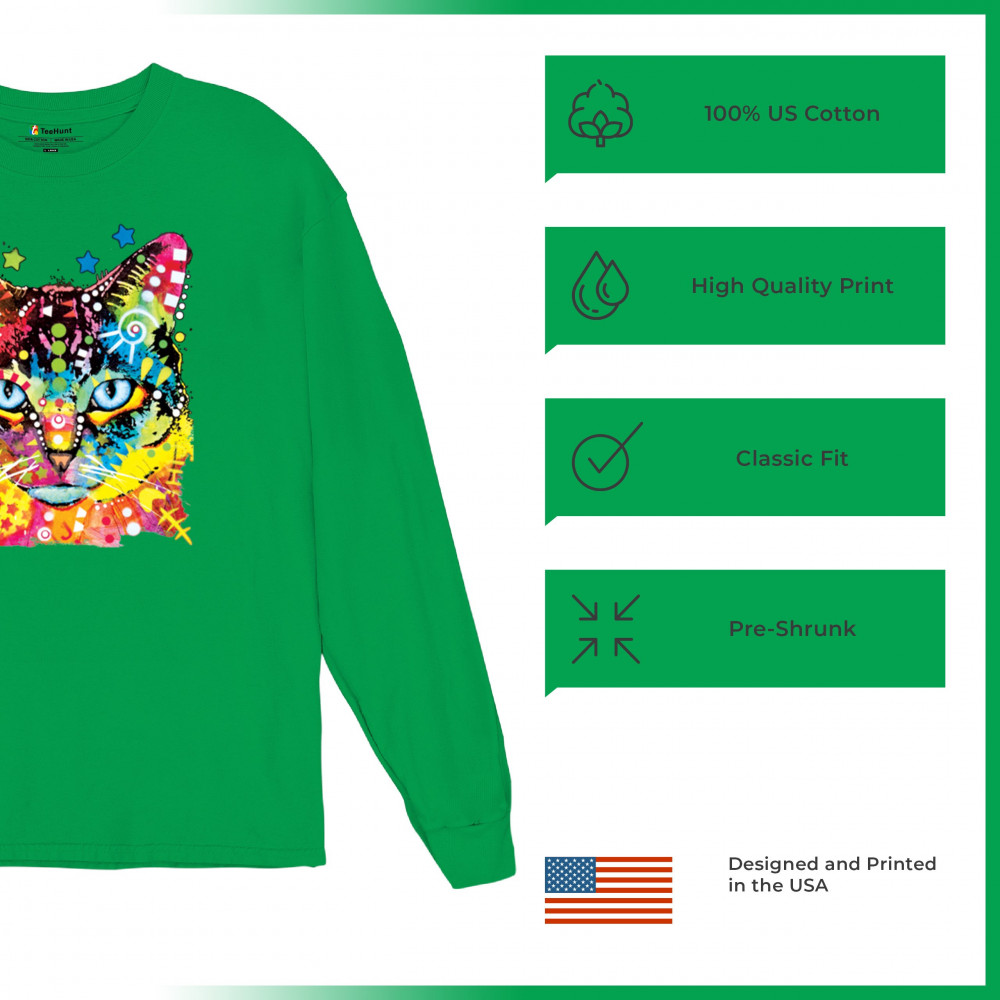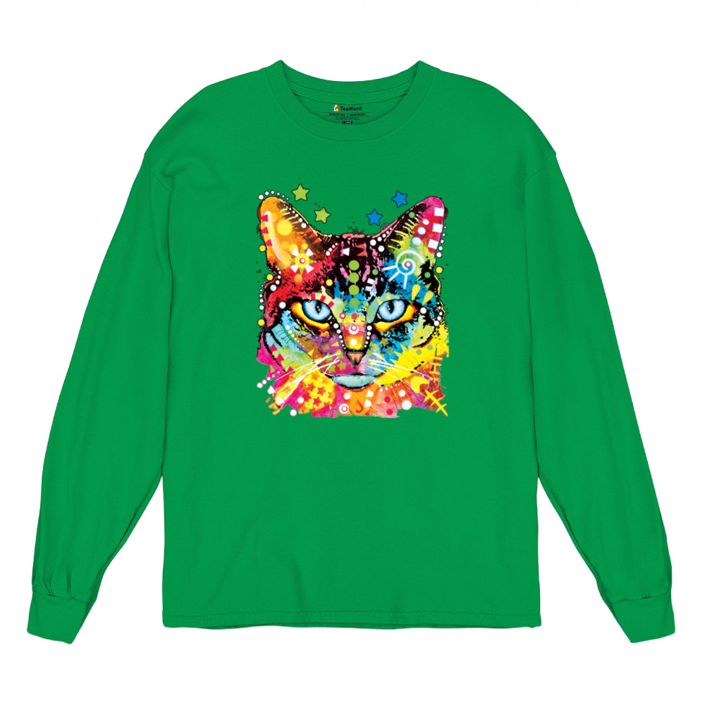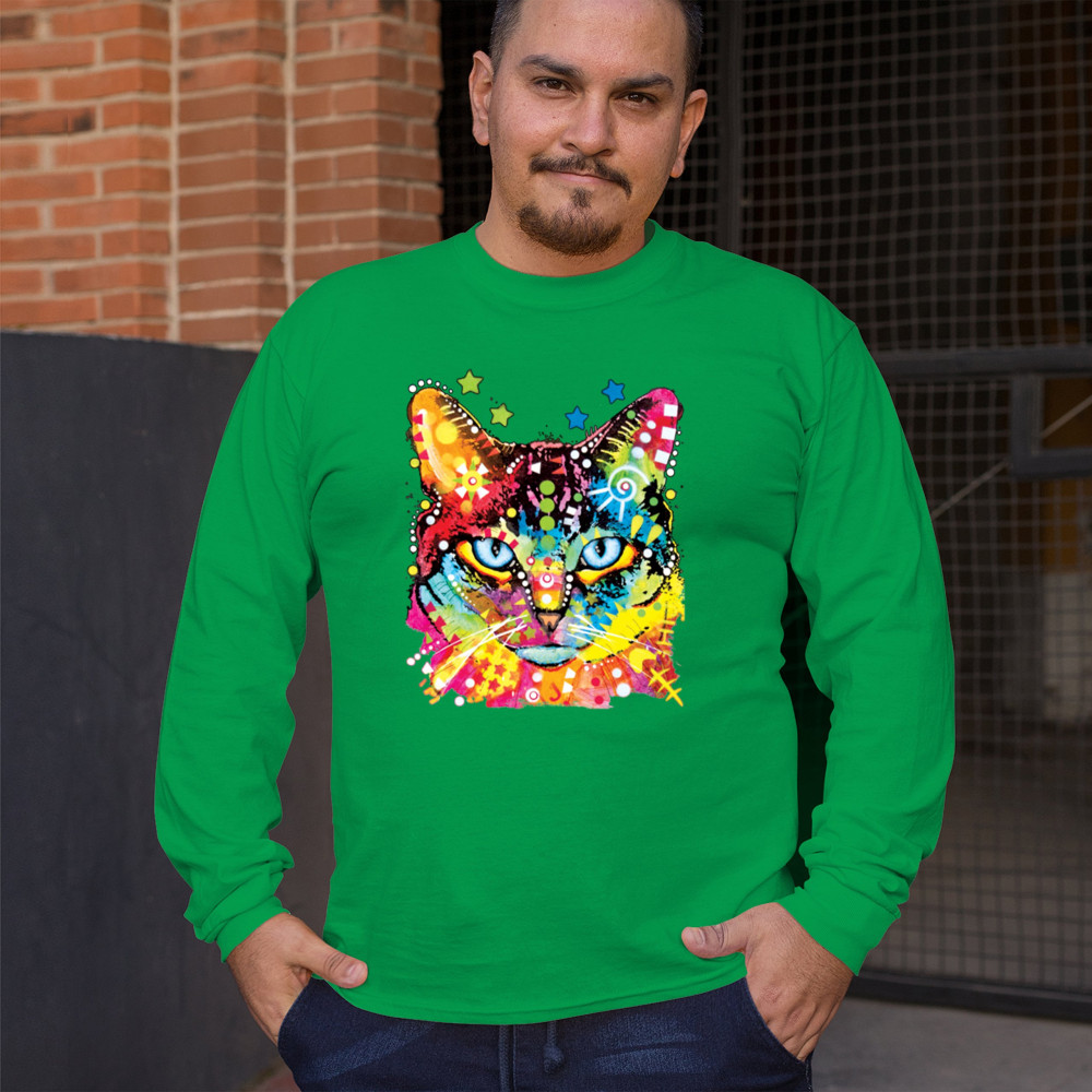 DEAN RUSSO BLUE EYES CAT long sleeve t-shirt colorful cute kitten pet green