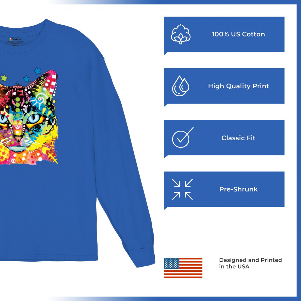 DEAN RUSSO BLUE EYES CAT long sleeve t-shirt colorful cute kitten pet royal blue