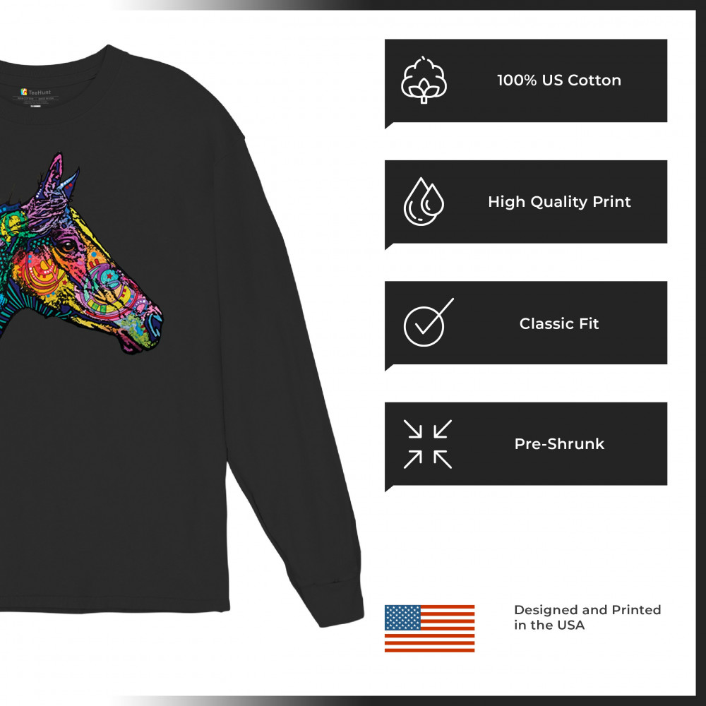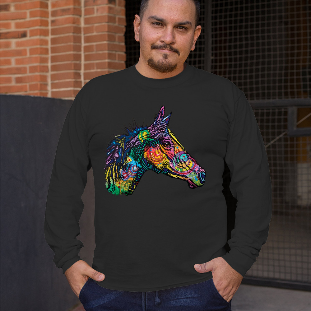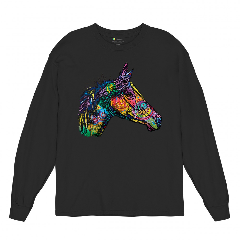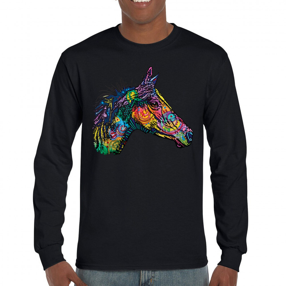 DEAN RUSSO COLORFUL HORSE long sleeve t-shirt neon mosaic wild mustang animal black