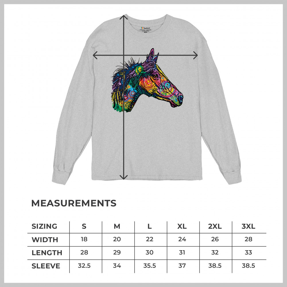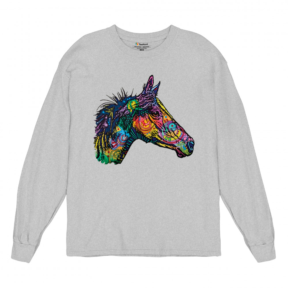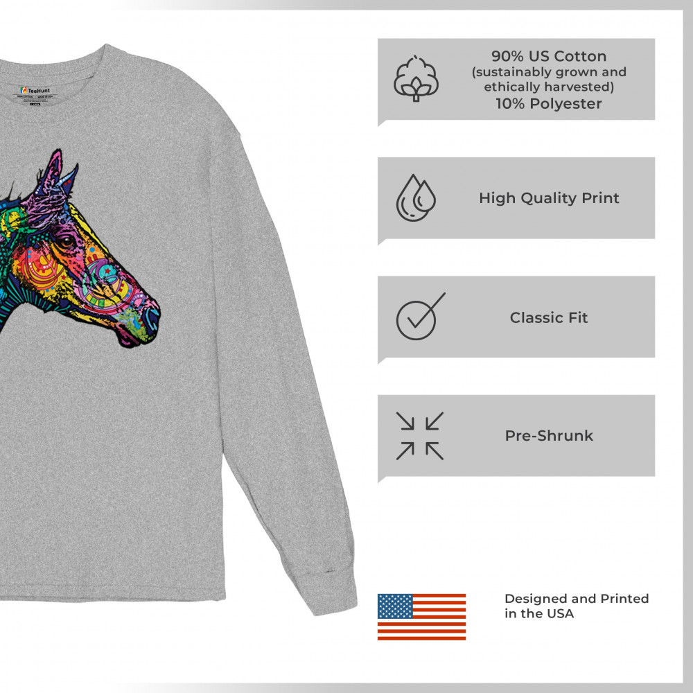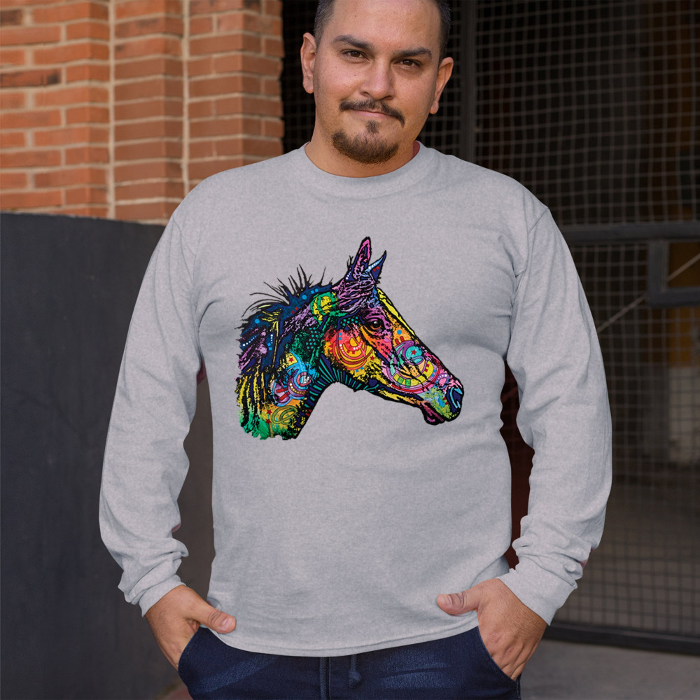 DEAN RUSSO COLORFUL HORSE long sleeve t-shirt neon mosaic wild mustang animal gray