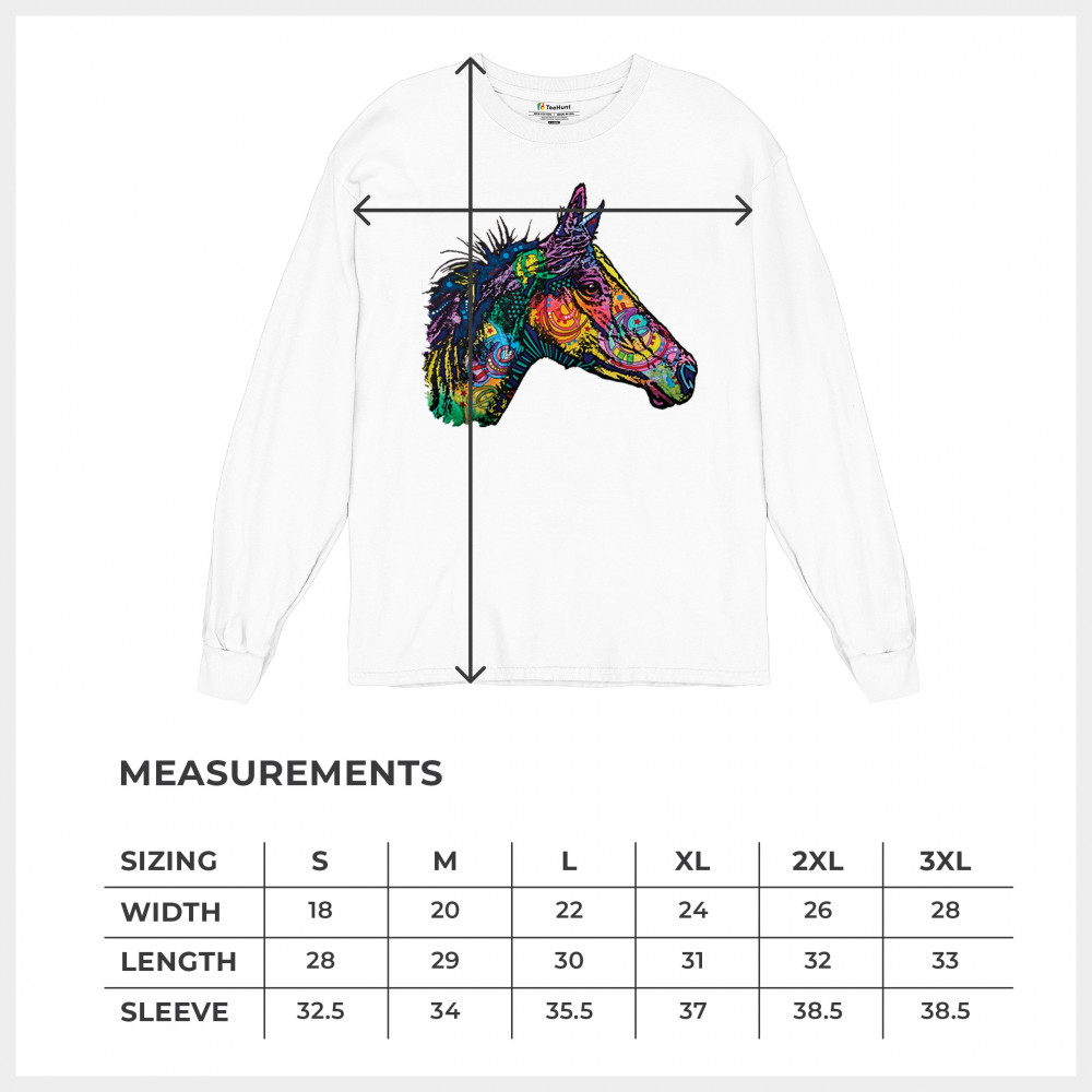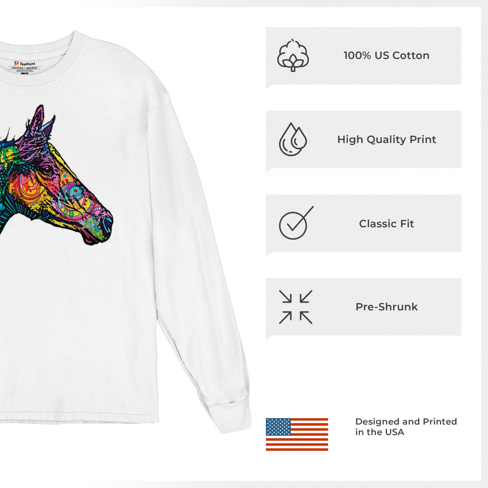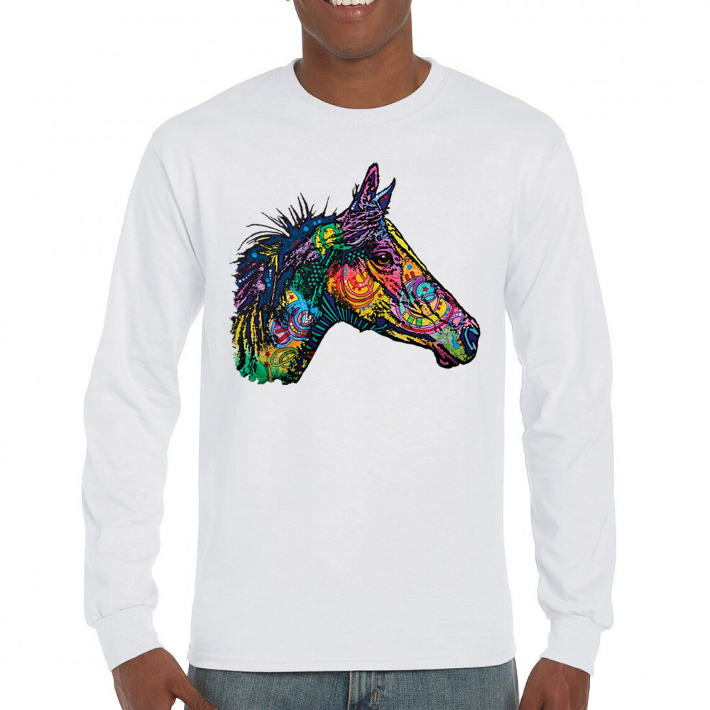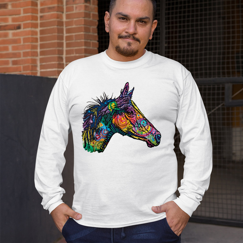 DEAN RUSSO COLORFUL HORSE long sleeve t-shirt neon mosaic wild mustang animal white