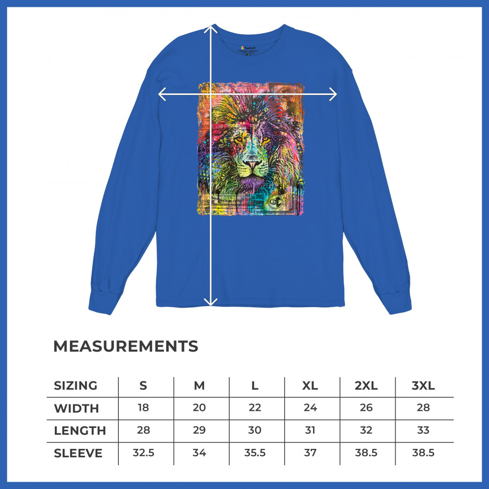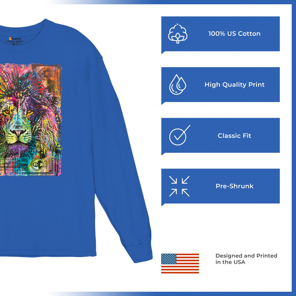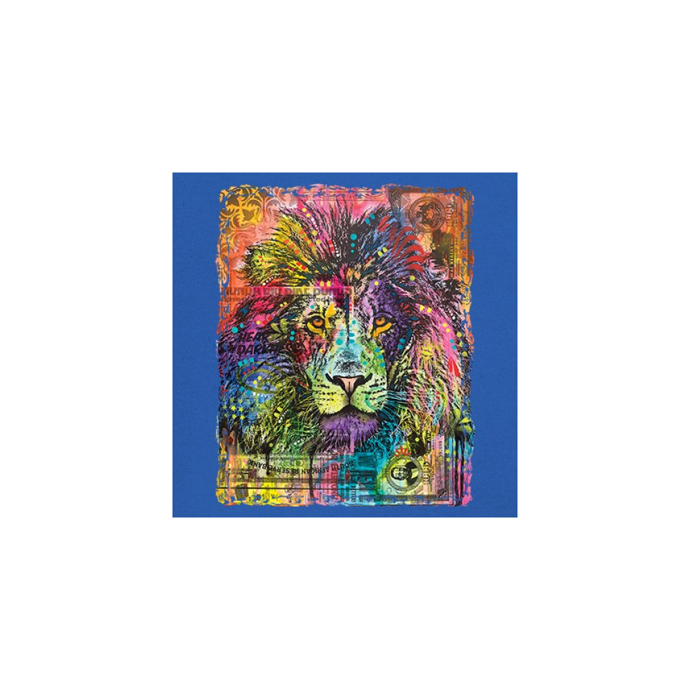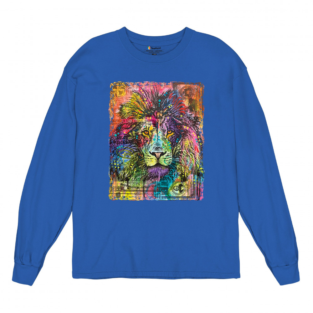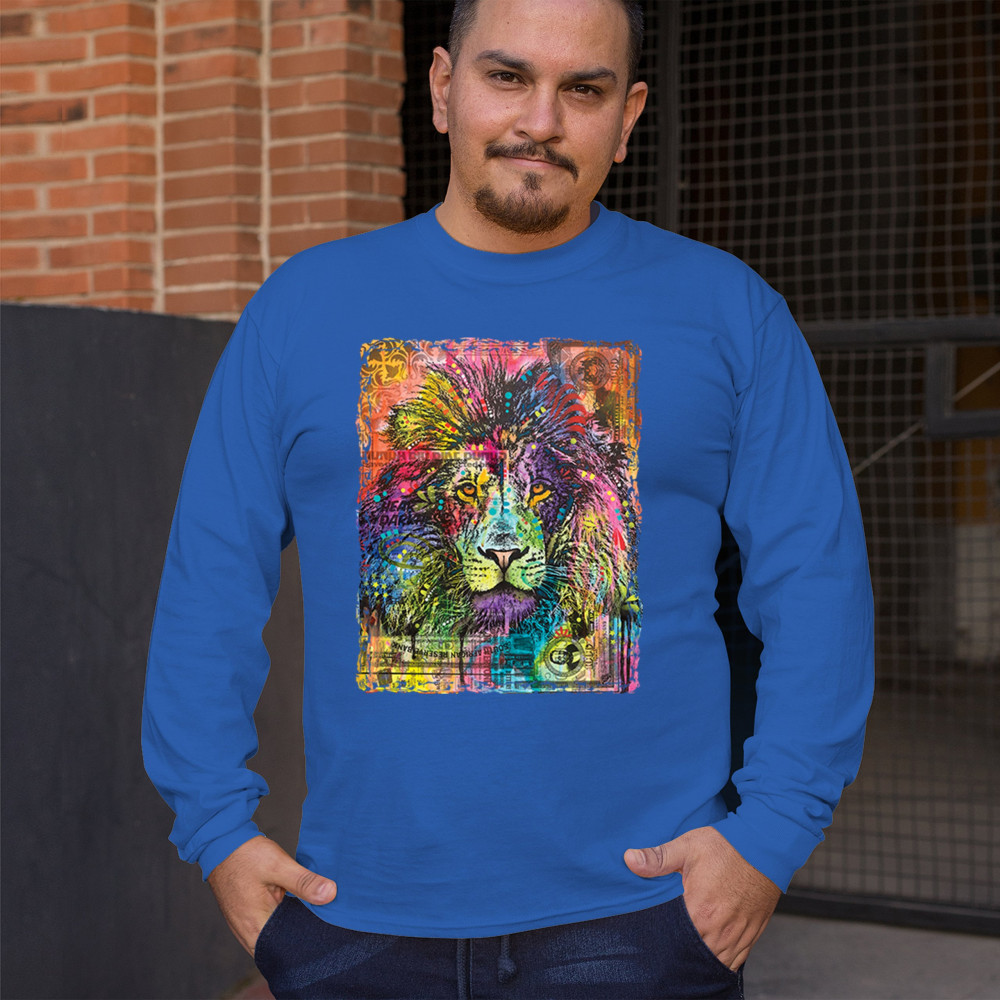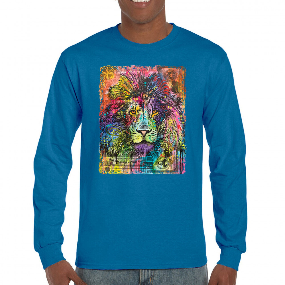 DEAN RUSSO COLORFUL LION HEAD long sleeve t-shirt wild life king roar big cat royal blue