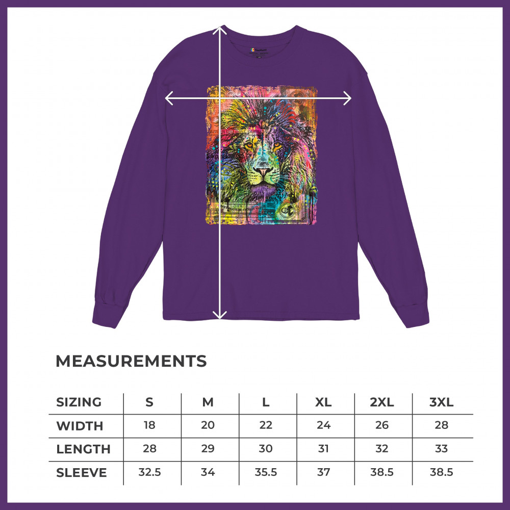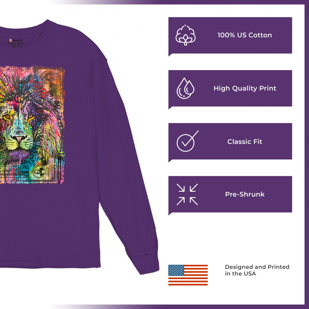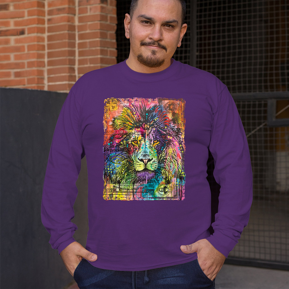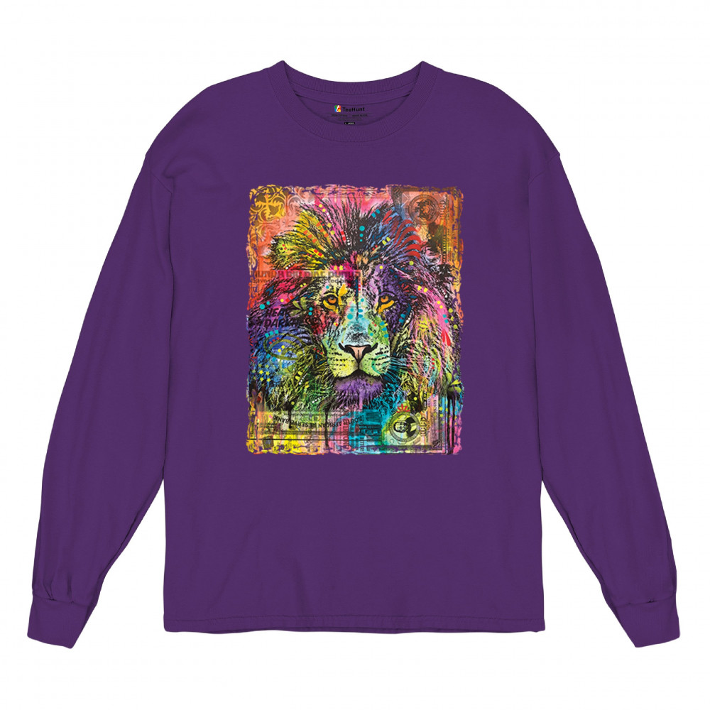DEAN RUSSO COLORFUL LION HEAD long sleeve t-shirt wild life king roar big cat purple