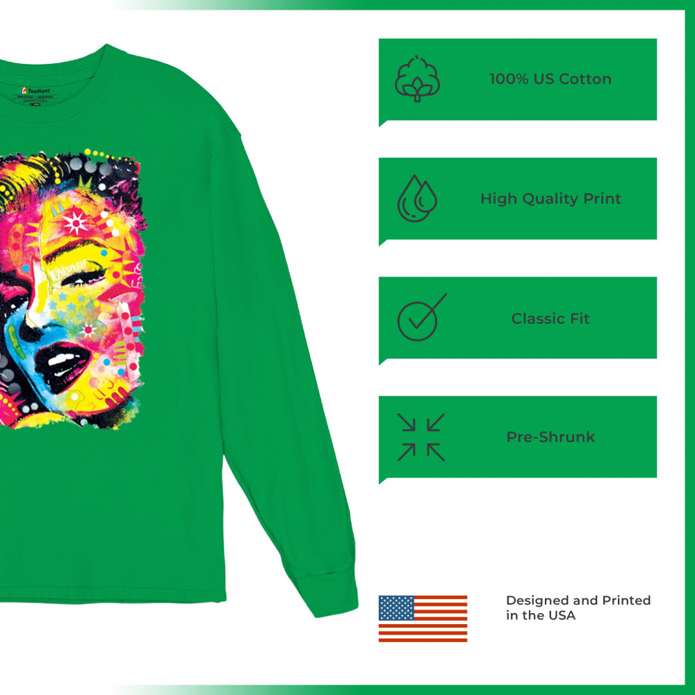 DEAN RUSSO COLORFUL MARILYN long sleeve t-shirt neon hot symbol starlet green