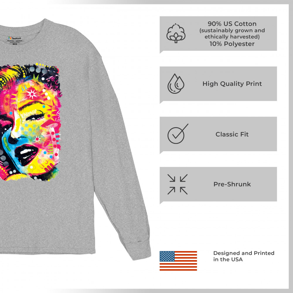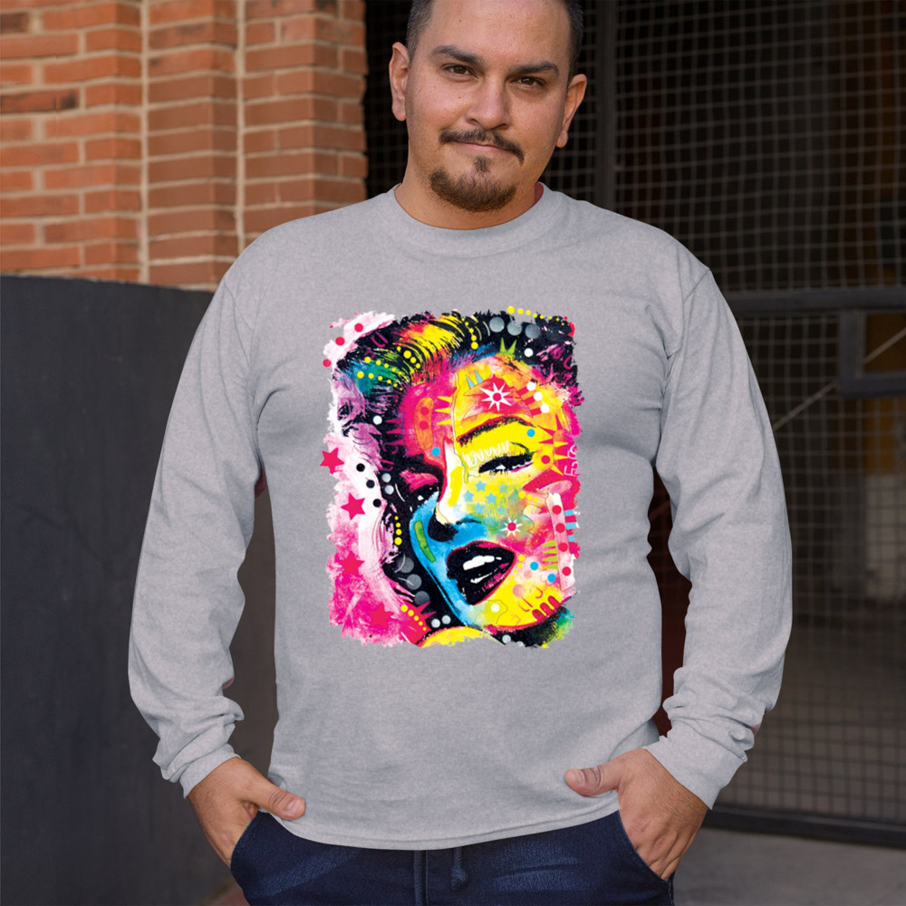 DEAN RUSSO COLORFUL MARILYN long sleeve t-shirt neon hot symbol starlet gray
