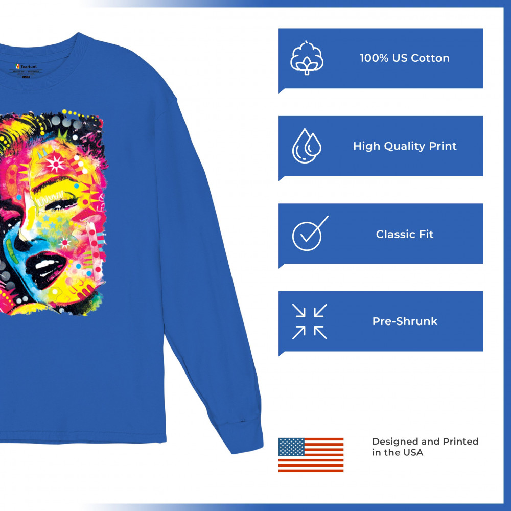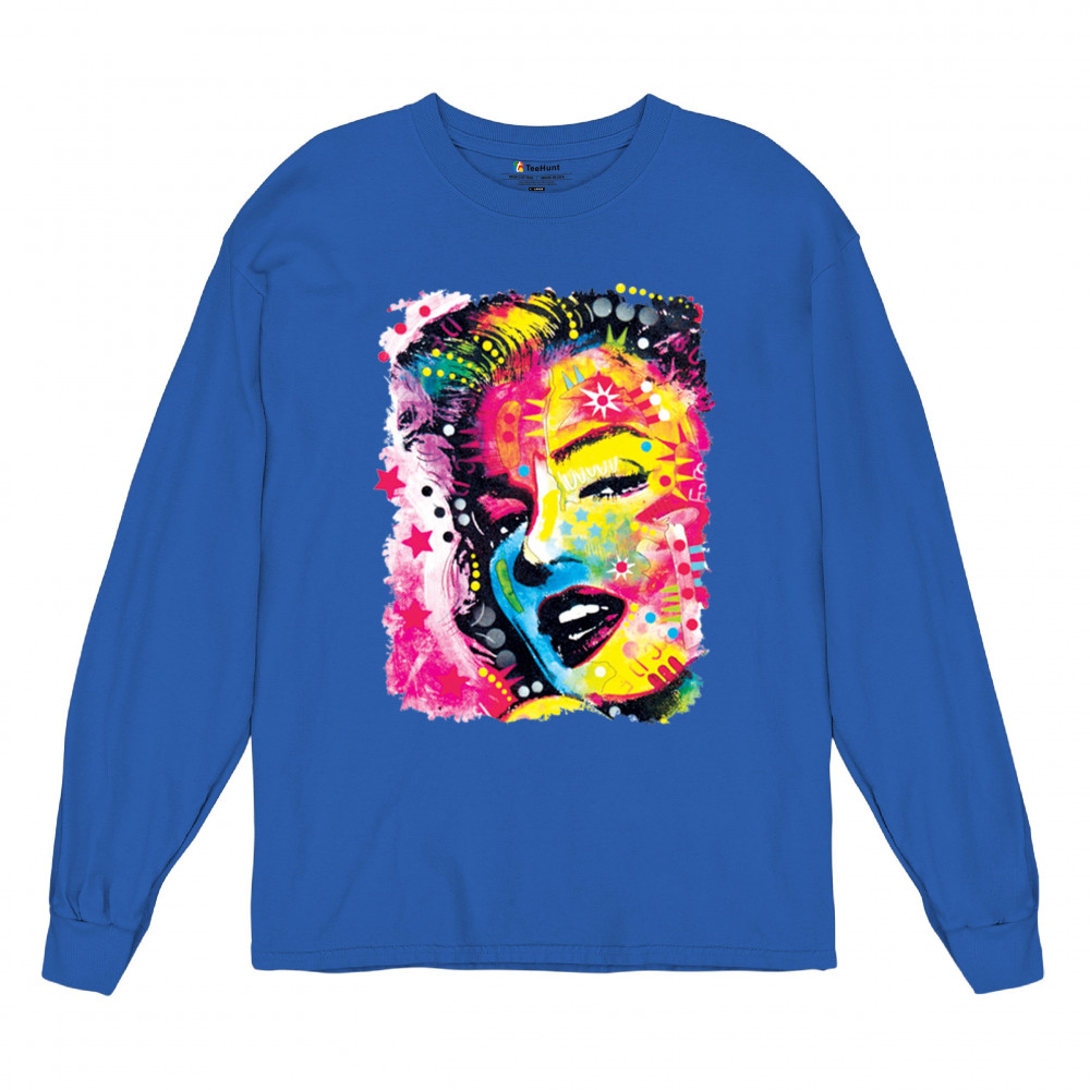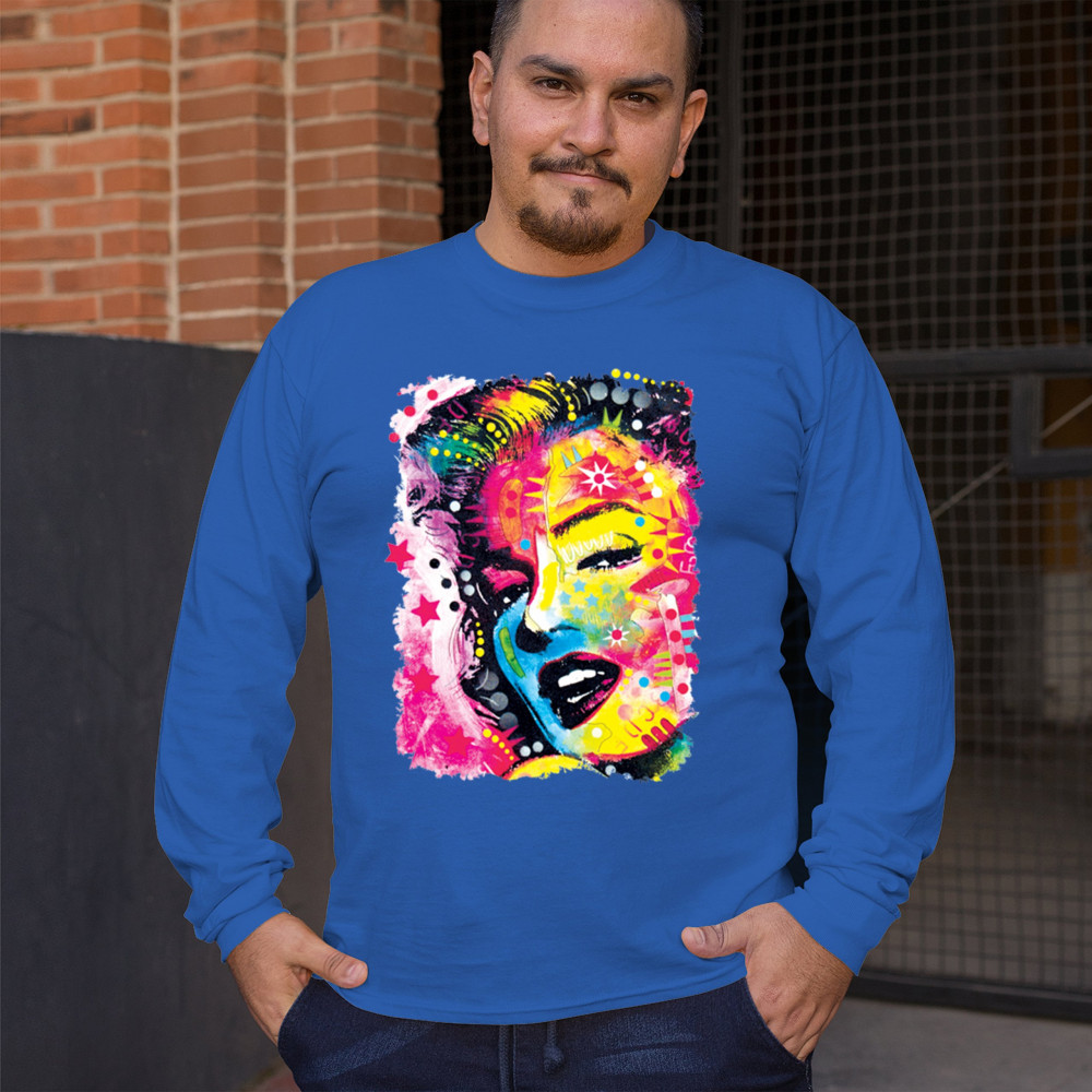 DEAN RUSSO COLORFUL MARILYN long sleeve t-shirt neon hot symbol starlet royal blue
