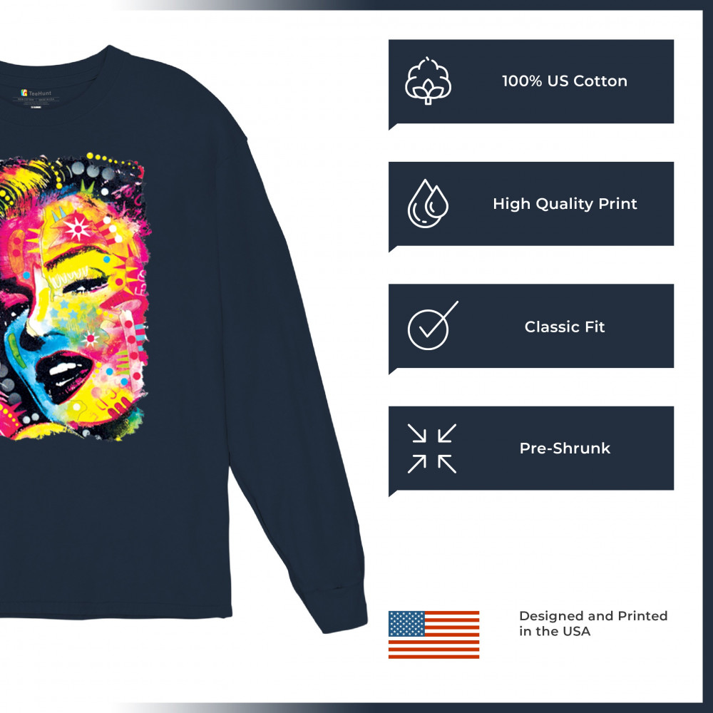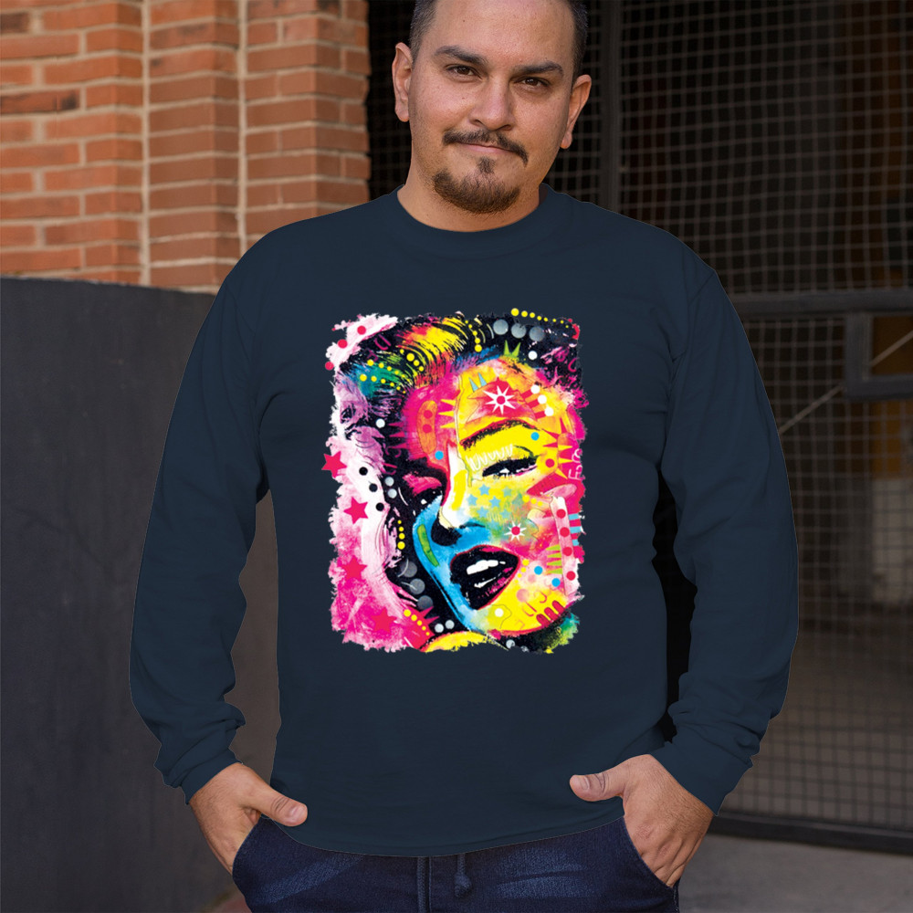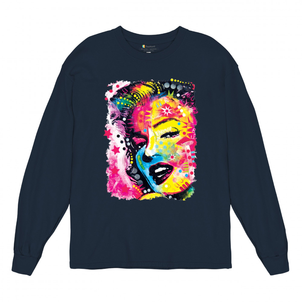 DEAN RUSSO COLORFUL MARILYN long sleeve t-shirt neon hot symbol starlet navy blue