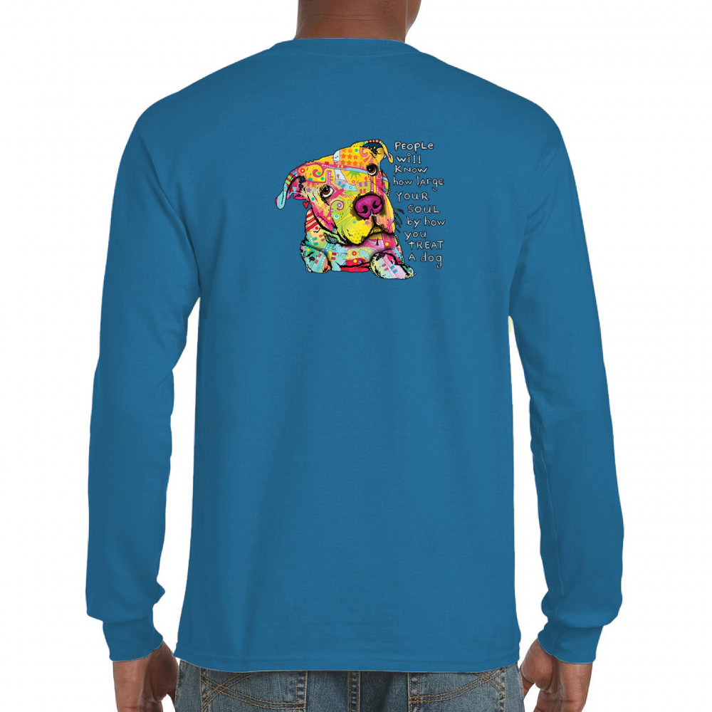 DEAN RUSSO COLORFUL NEON DOG long sleeve t-shirt how large your soul is pet royal blue