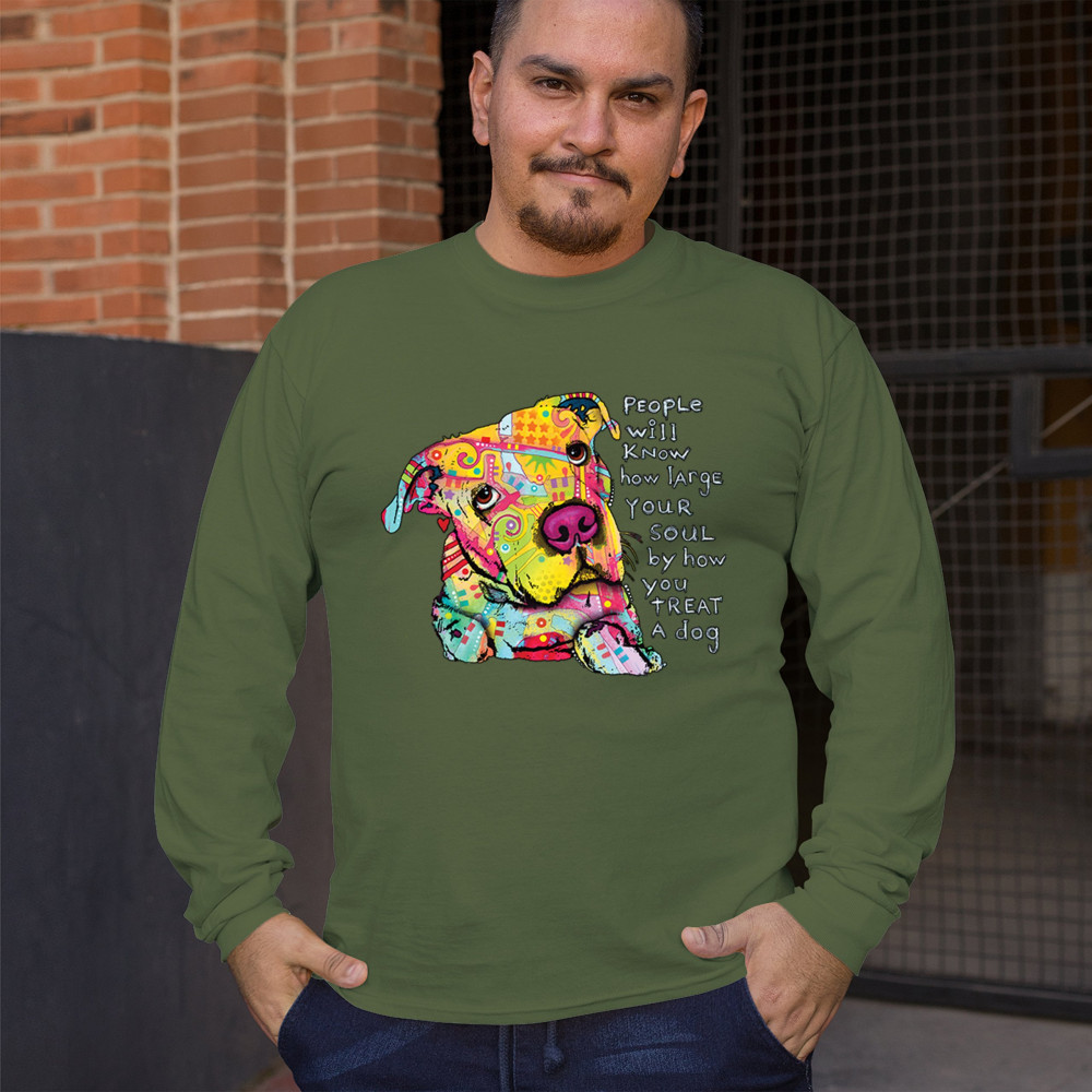 DEAN RUSSO COLORFUL NEON DOG long sleeve t-shirt how large your soul is pet military green