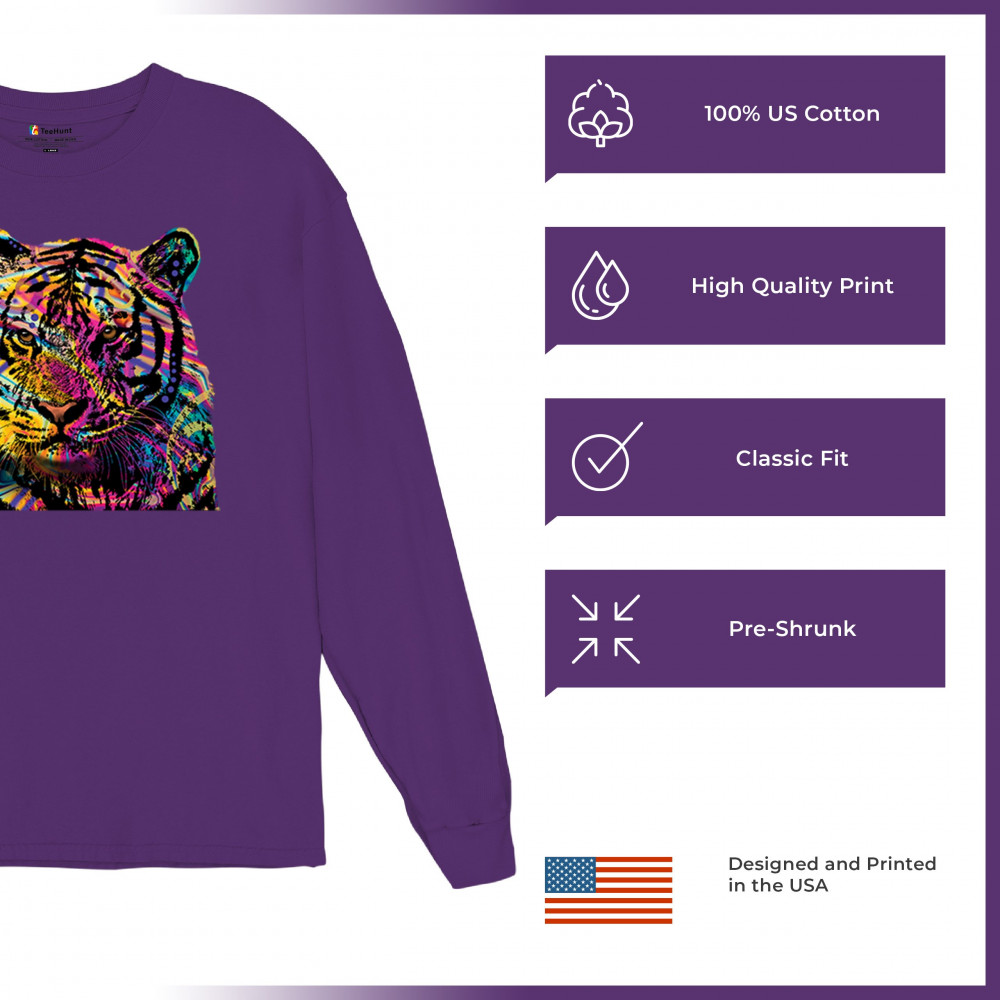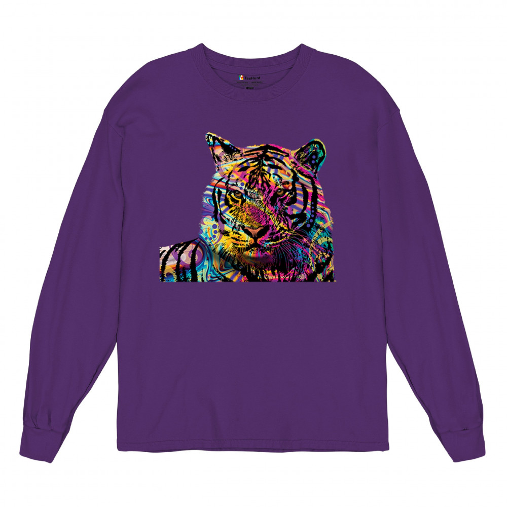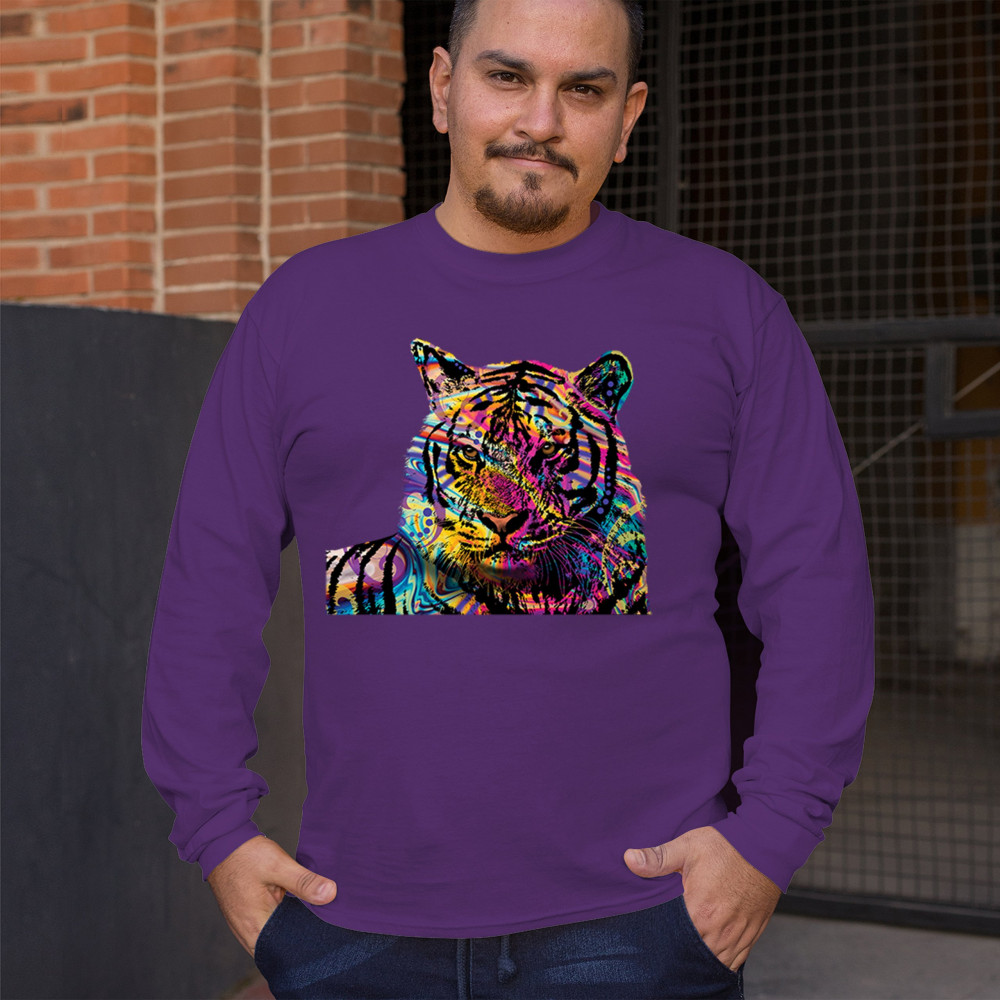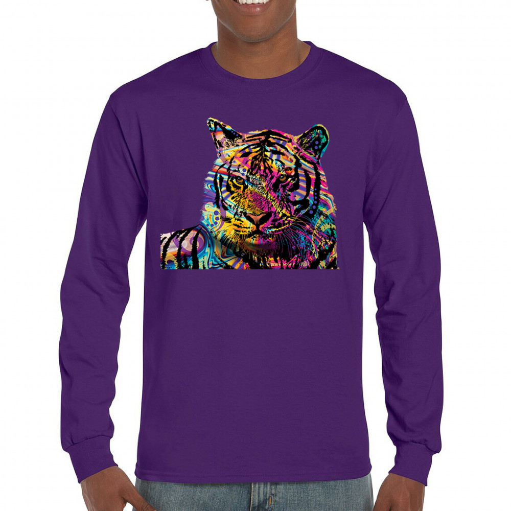DEAN RUSSO COLORFUL NEON SIBERIAN TIGER long sleeve t-shirt wild big cat purple