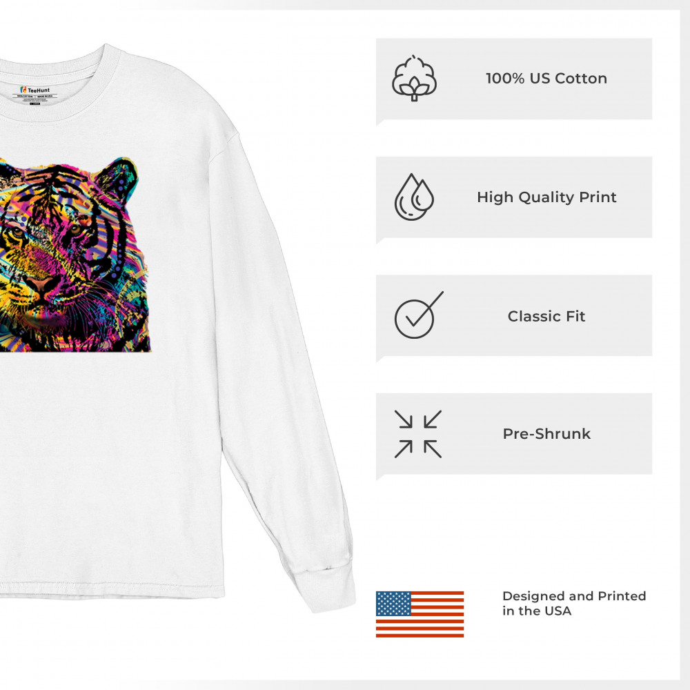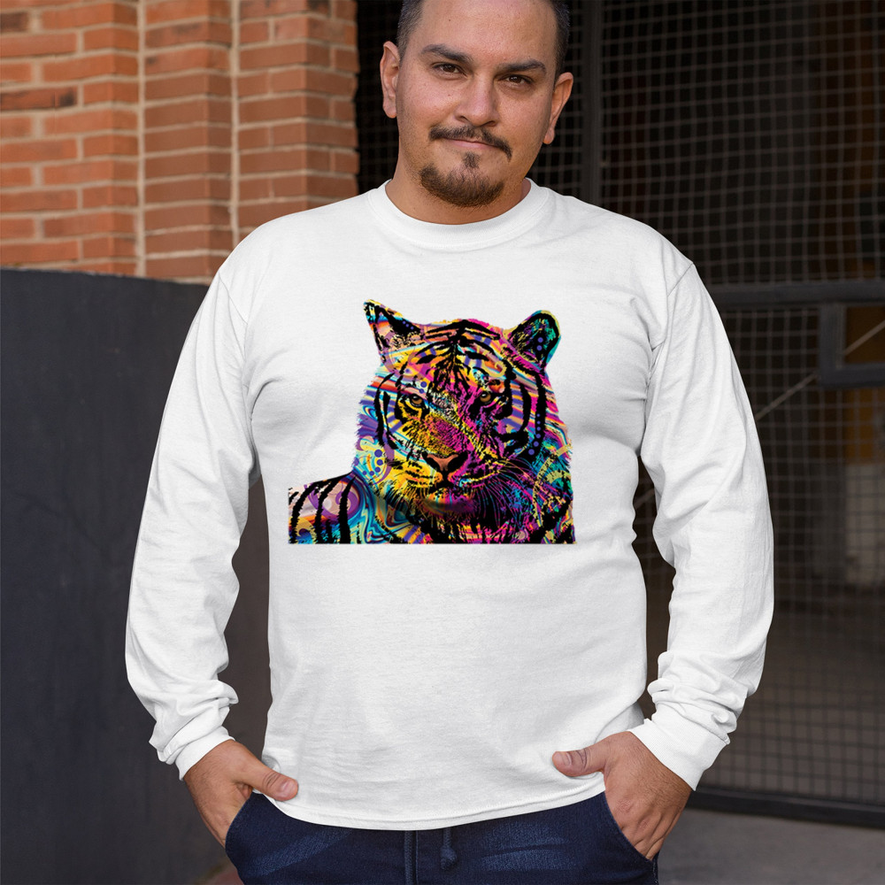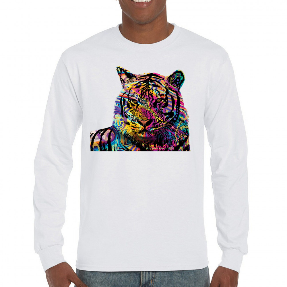 DEAN RUSSO COLORFUL NEON SIBERIAN TIGER long sleeve t-shirt wild big cat white