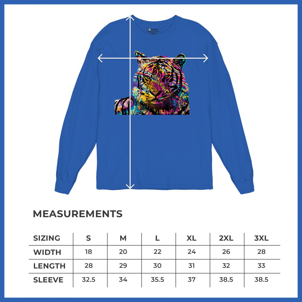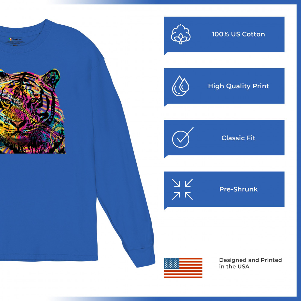 DEAN RUSSO COLORFUL NEON SIBERIAN TIGER long sleeve t-shirt wild big cat royal blue