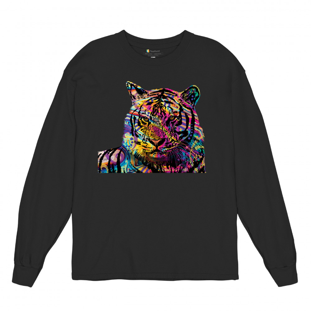DEAN RUSSO COLORFUL NEON SIBERIAN TIGER long sleeve t-shirt wild big cat black