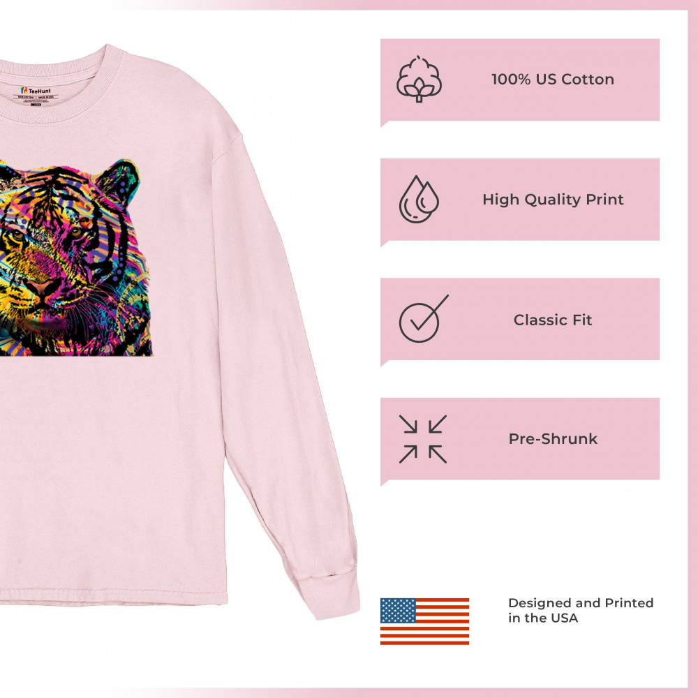 DEAN RUSSO COLORFUL NEON SIBERIAN TIGER long sleeve t-shirt wild big cat pink