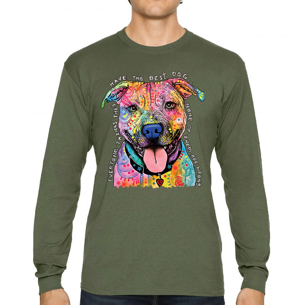 DEAN RUSSO COLORFUL PIT BULL long sleeve t-shirt everyone has best dogs military green