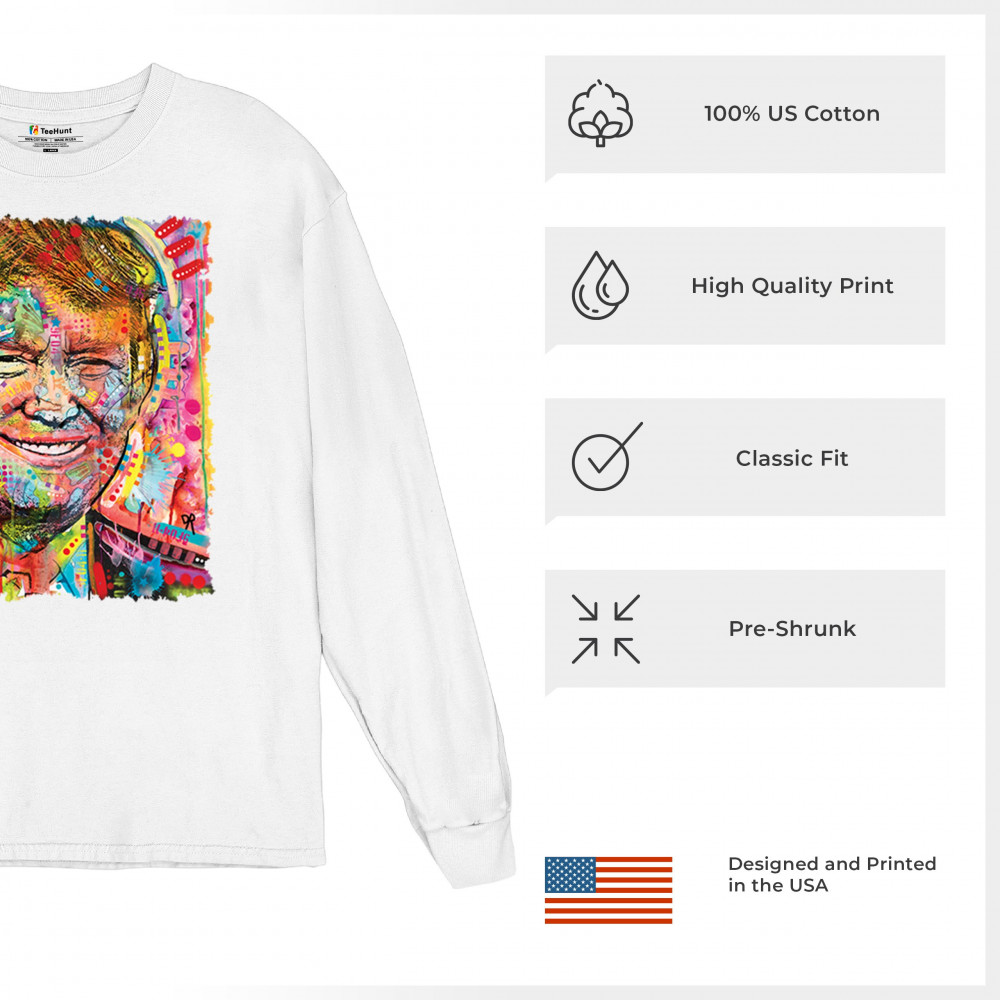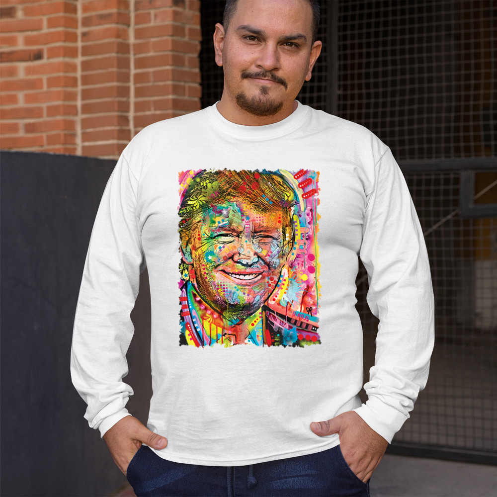 DEAN RUSSO COLORFUL TRUMP long sleeve t-shirt 45 american president 2024 white