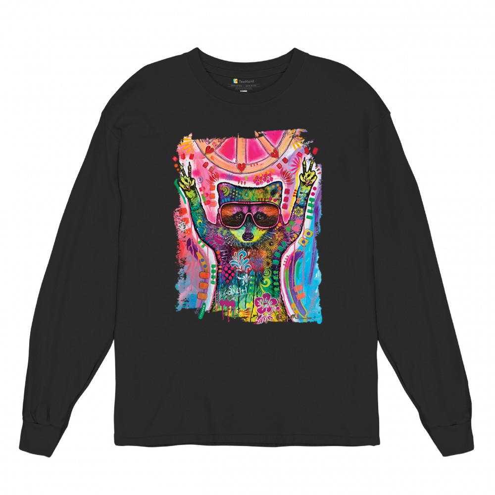 DEAN RUSSO COSMIC TRASH PANDA long sleeve t-shirt funny weird hippie black