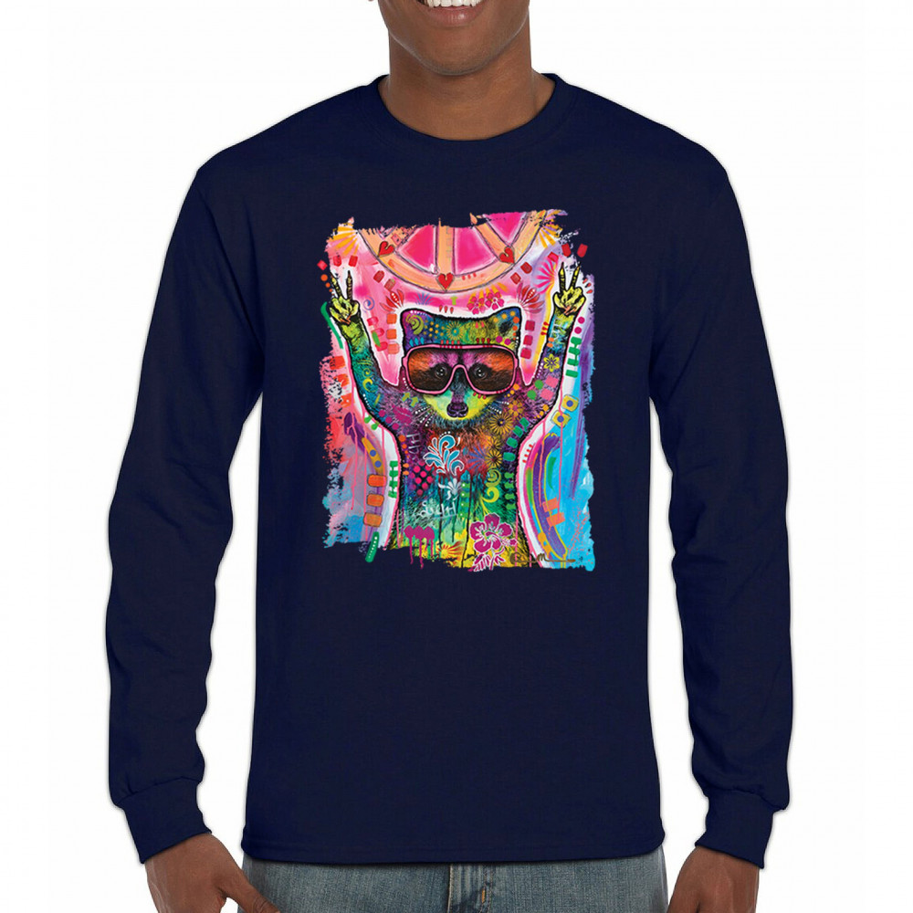 DEAN RUSSO COSMIC TRASH PANDA long sleeve t-shirt funny weird hippie navy blue