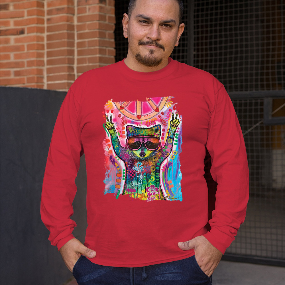 DEAN RUSSO COSMIC TRASH PANDA long sleeve t-shirt funny weird hippie red