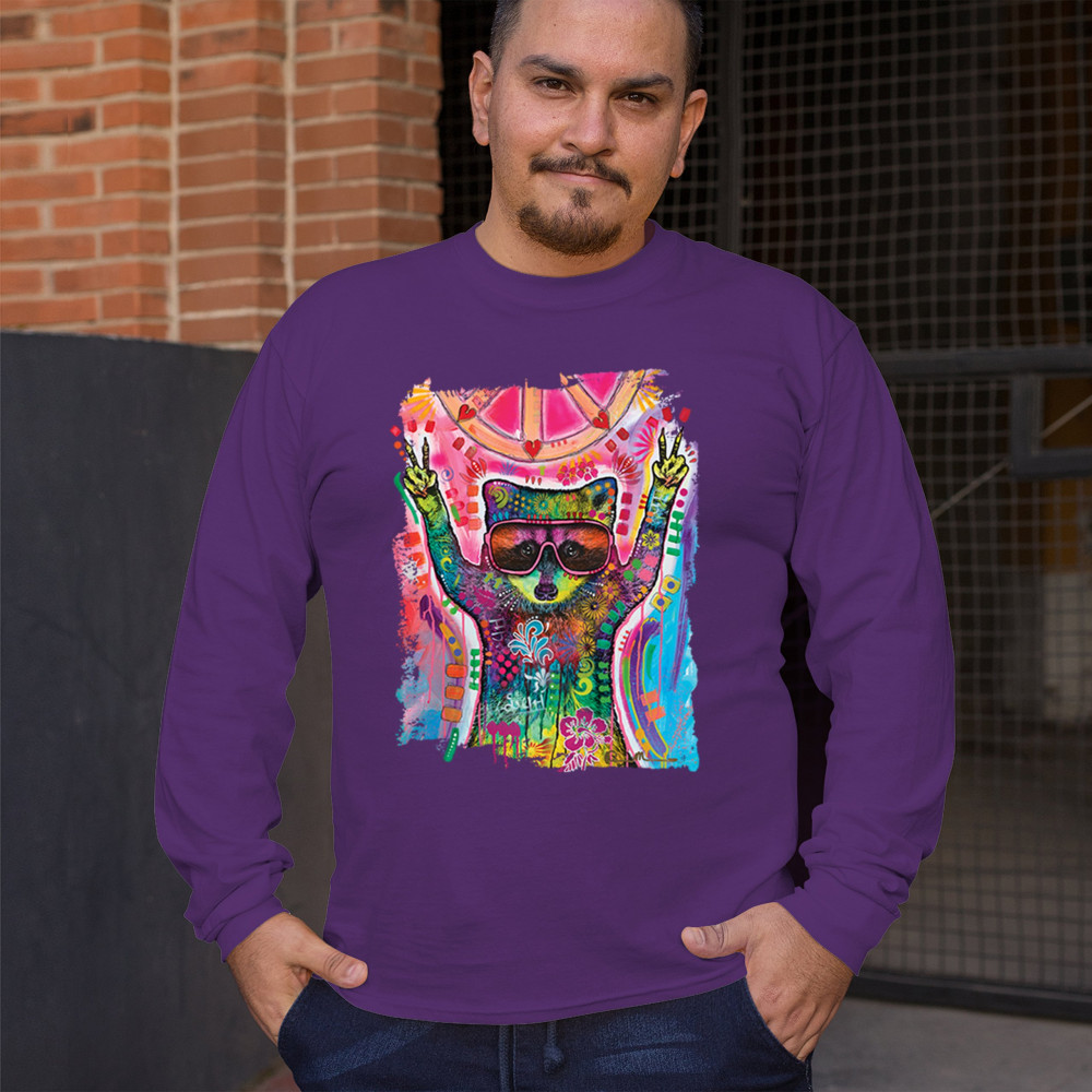 DEAN RUSSO COSMIC TRASH PANDA long sleeve t-shirt funny weird hippie purple